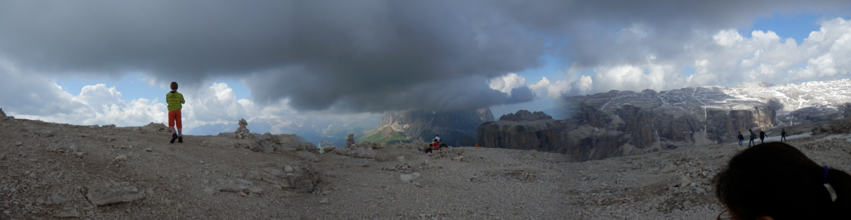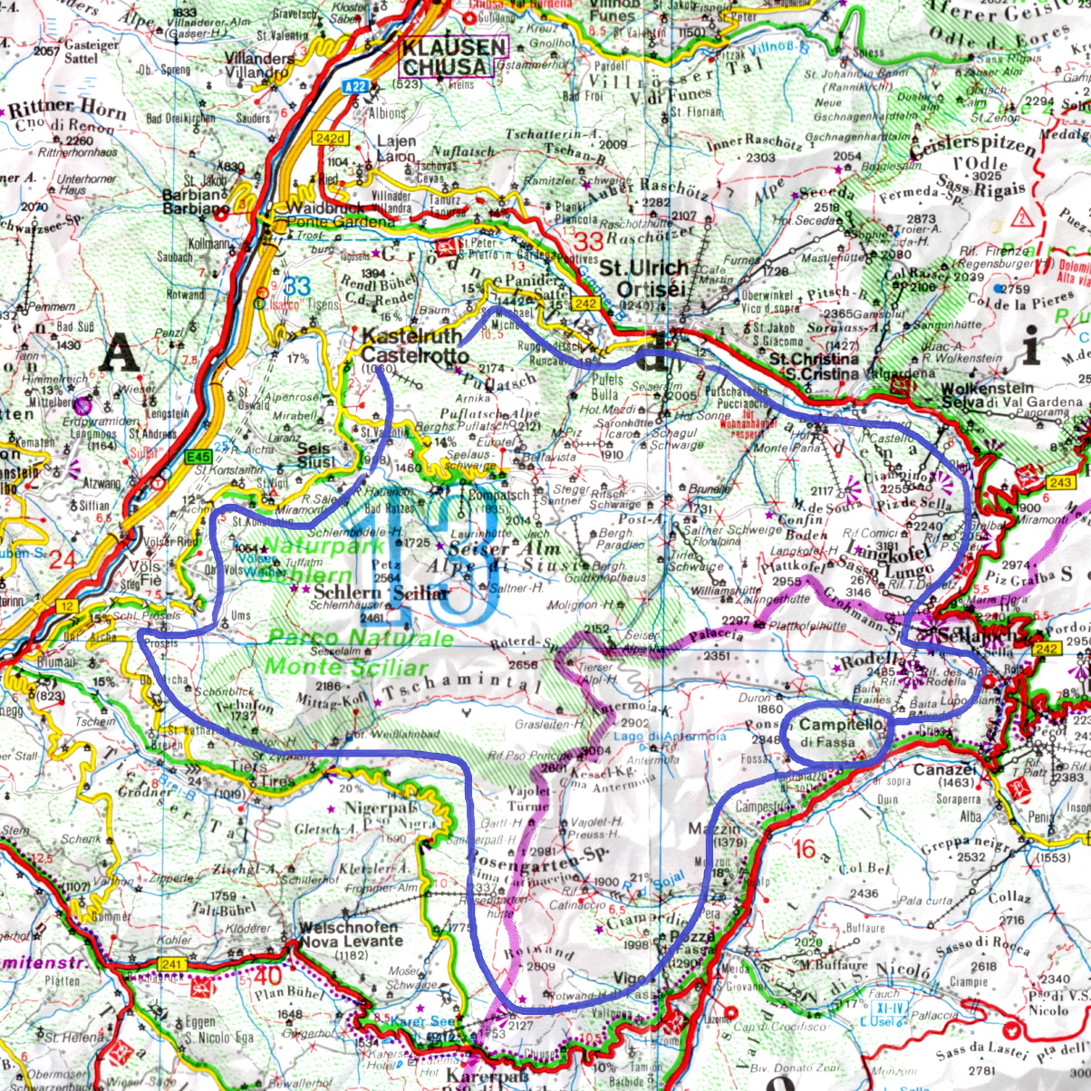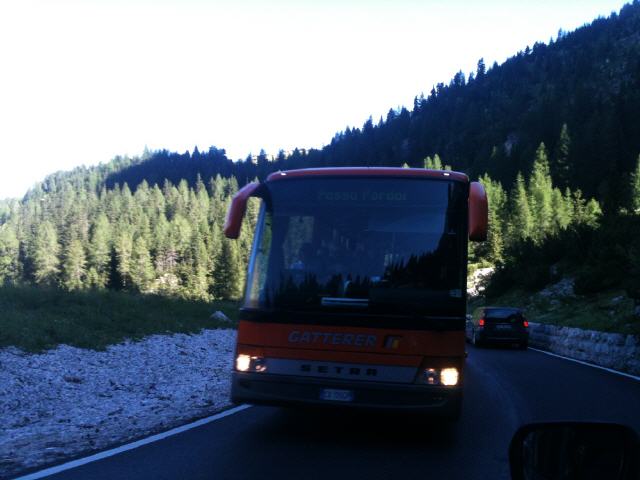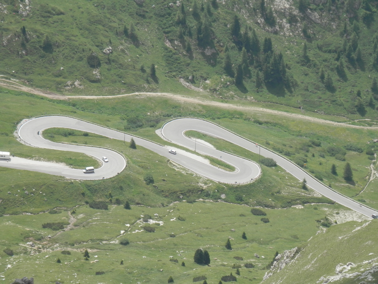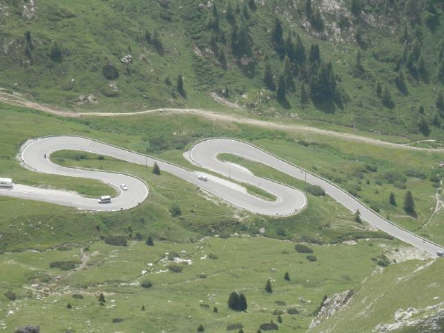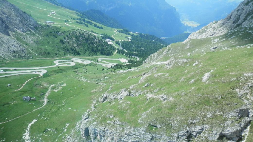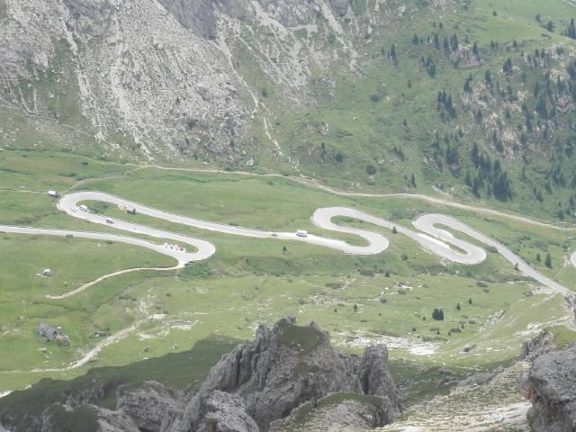 Über Kastelruth sind wir dann nach St. Ulrich und dort auf die 242 gefahren. Diese Straße führt dann in Richtung Süden über das Sellajoch (Pso. di Sella).