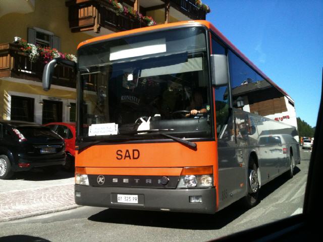 Die drei Buchstaben und die Farbe sollte man sich merken. Man hört zwei kurze Hupentöne und sollte sofort anhaltebereit sein. Die Fahrer der SAD-Busse kennen Ihre Strecken, Fahrzeuge und Grenzen. In den Kehren wird die ganze Straßenbreite genutzt. Solle der Bus entgegenkommen empfehle ich äußerste Vorsicht. Überholen ist fast unmöglich. Wenn nichts von vorne kommt, werden die leichten Kurven für den Busfahrer zur Geraden. Für einen ungetrübten Fahrspaß sollte man den Fahrplan auswendig lernen und zwischen den Linienfahrten auf Tour gehen. Mitfahren ist jedoch ein echtes Erlebnis. Nach einer Wanderung sollte man sich diesen Spaß ruhig gönnen. |