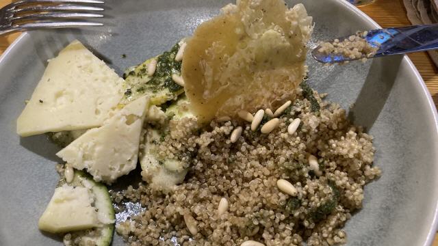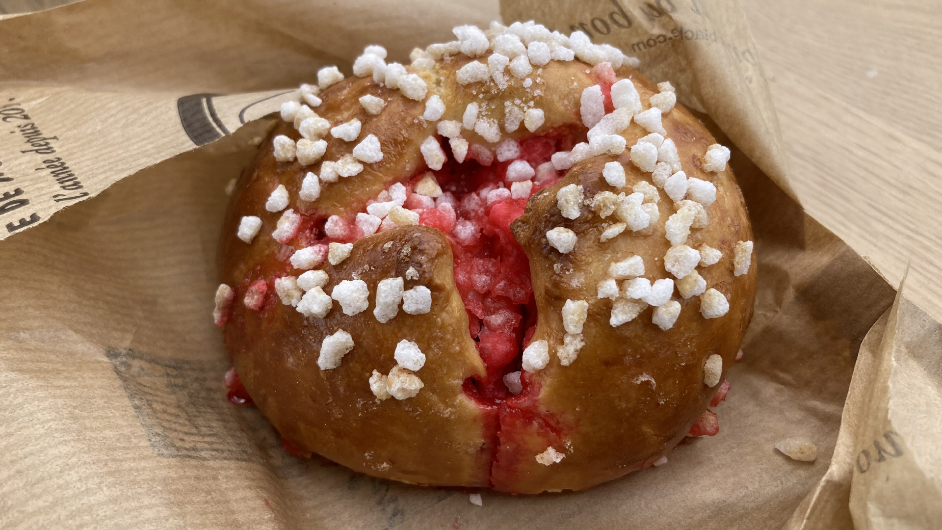 Auf meiner Tour bin ich dann am „Ramparts of Villefranche de Conflent„ (Stadtmauer von Villefranche de Conflent) vorbeigekommen. Neben der Straße lagen lauter Kanonenkugeln, auch wenn diese nur das Parken am Straßenrand verhindern sollten, machten sie doch Eindruck auf mich. In Prades überfiel mich der „Kleine Hunger“. Zu meinem Glück fand ich dort direkt an meiner Strecke die „Marie Blachère Boulangerie Sandwicherie Tarterie“. Eine riesige Auswahl an frisch bereiteten Speisen, ich konnte mich kaum entscheiden. Neben einem perfekten Baguette kaufte ich mir noch dieses sündhaft süße Teilchen. Ich glaube es heißt „Brioches aux Pralines“ und empfehle dringend es mal zu probieren. |