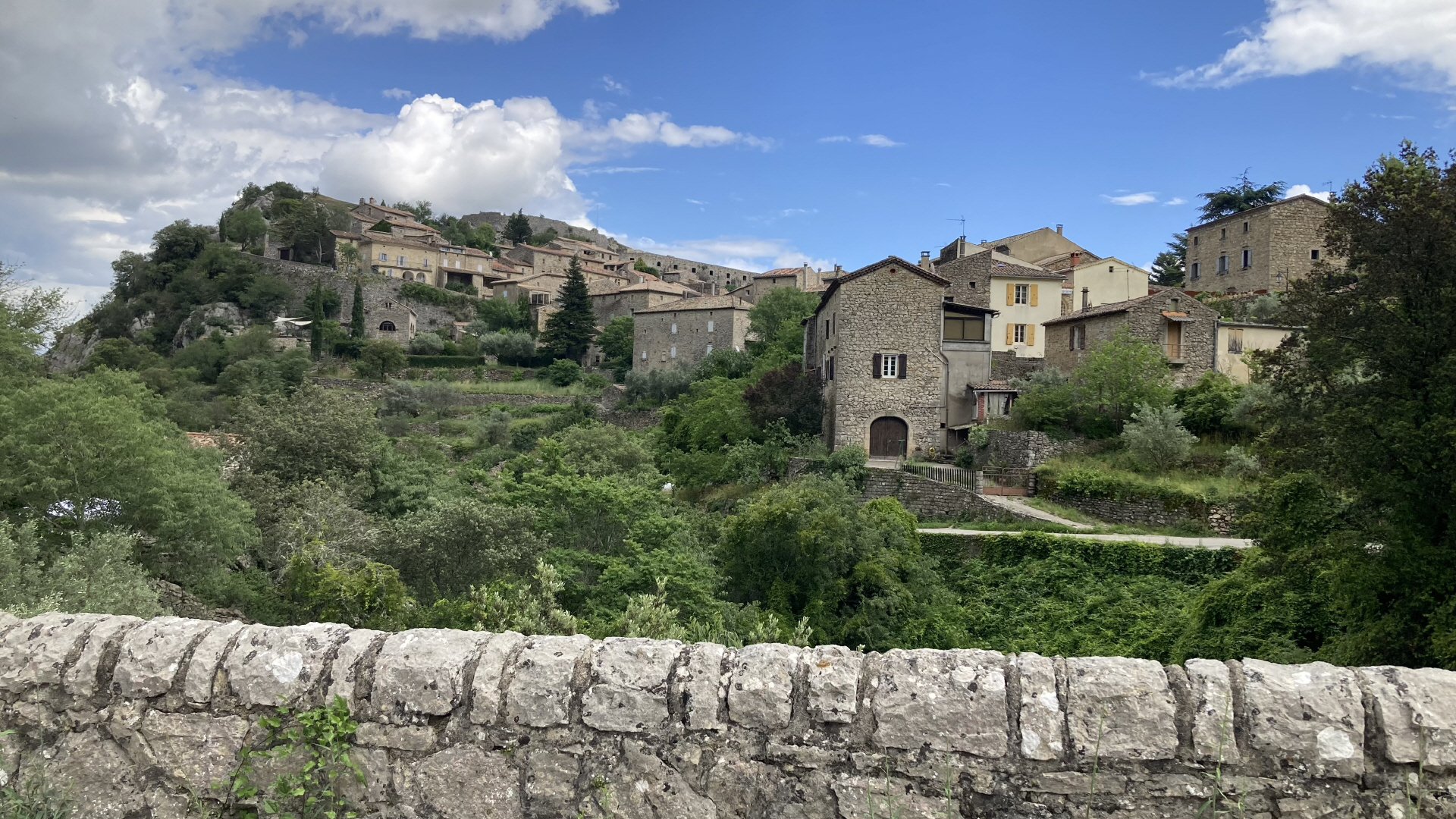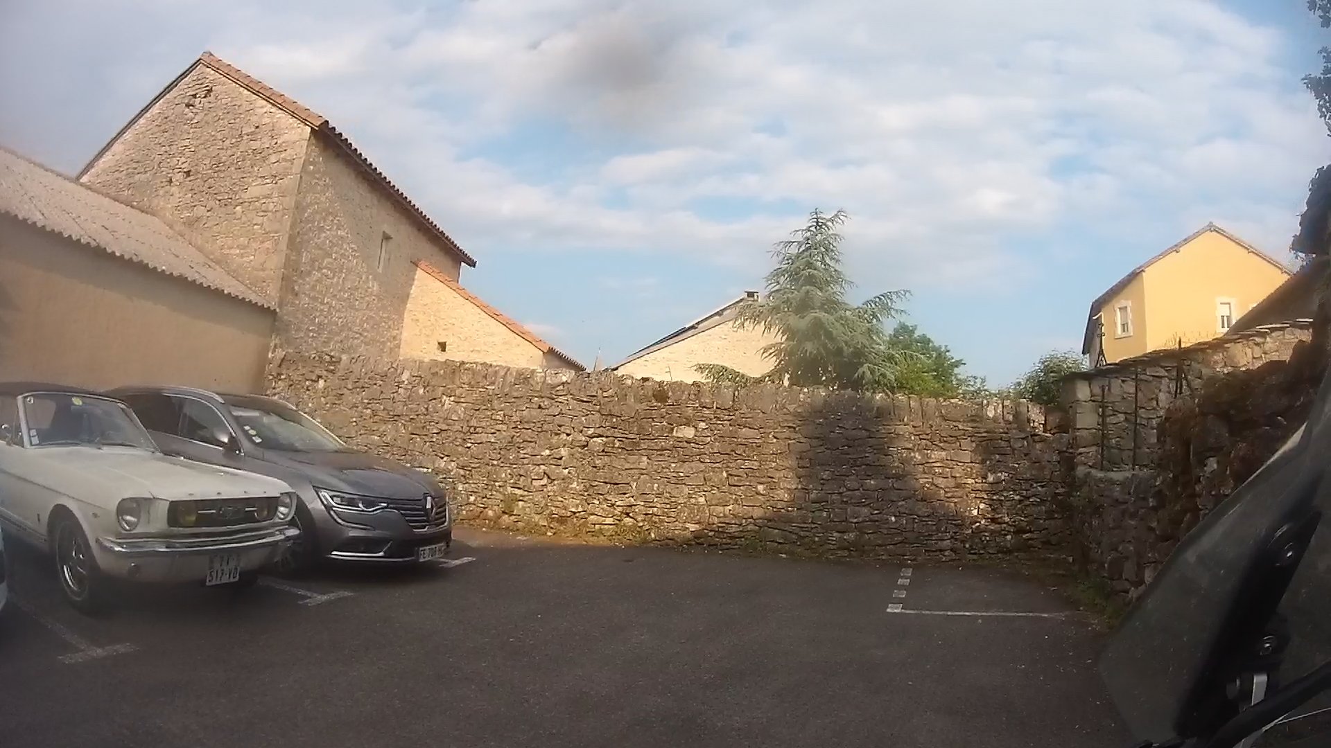 Als mein Magen mir mit einsetzendem Hunger an die fortgeschrittene Stunde erinnerte, befragte ich mein Navi nach einem Hotel in der Nähe. Es wurde eines gefunden und der Weg dorthin machte einen spannenden Eindruck. Ich warf den Anker und bog in die nächste kleine Straße in Richtung Süden und talwärts ab. Die Straße wand sich in Serpentinen und interessanten Kurven Talwärts nach Lapanouse-de-Cernon zum „Chambres d'Hôtes Lou Jassou". Ein Zimmer hätte ich bekommen können, doch leider kein Essen. In dem Ort gab es auch kein anderes Essensangebot. Ich machte mich dann weiter auf die Suche, getröstet durch die Option, die tolle Straße wieder hochfahren zu dürfen. Fündig wurde ich dann im nächsten Ort, La Cavalerie im Hotel „Hôtel Restaurant de la Poste“. Das Motorrad stand geschützt im Hinterhof neben einem bildschönen Oldtimer, einem Ford Mustang. Ich habe gut geschlafen und fühlte mich gut versorgt. |
