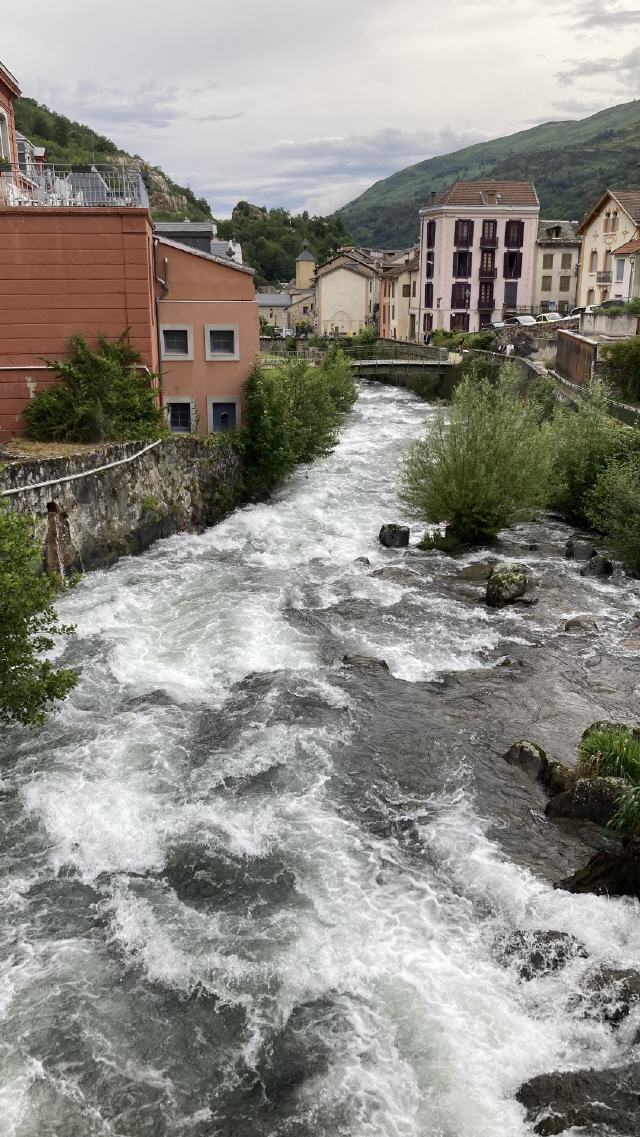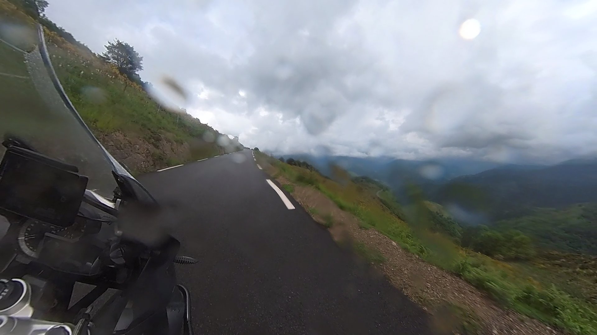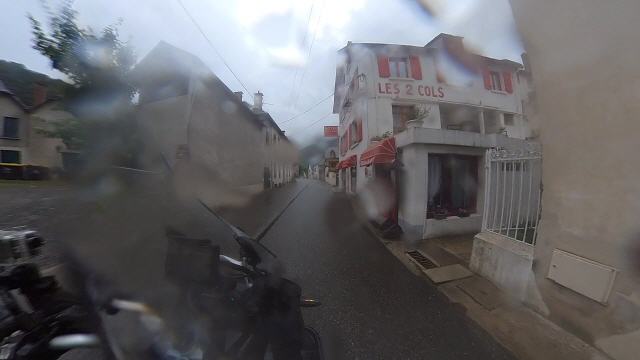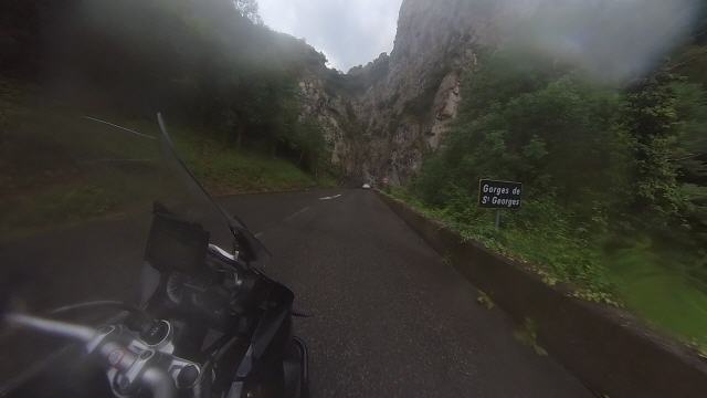 Von der Rückfahrt habe ich keine Fotos und kaum brauchbares Filmmaterial, weil es zeitweise extrem stark regnete. Hier eine Aufnahme von der " Gorges de St. Georges". Ich überfuhr den Col de Pailhères ohne es zu merken. Zu dem Zeitpunkt war die Temperatur auf 5 Grad gesunken und in den Starkregen mischte sich zeitweise Hagel. Ich habe auf dem Pass nur einen Motorradfahrer wahrgenommen, der mir entgegenkam. Auch so ein Verrückter in meinem Alter. Völlig durchgefroren erreichte ich mein Hotelzimmer, um dann auch noch zu erfahren das die Küche an diesem Tag geschlossen sei. Ich musste also zu allem Überfluss in den Ort laufen ob etwas Warmes in den Bauch zu bekommen. Ich stolperte in den ersten erreichbaren Laden und war mit dem Preis-Leistungsverhältnis im „Restaurant Les Thermes“ zufrieden. |
