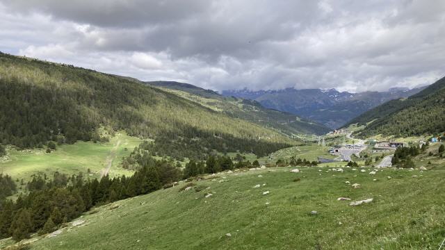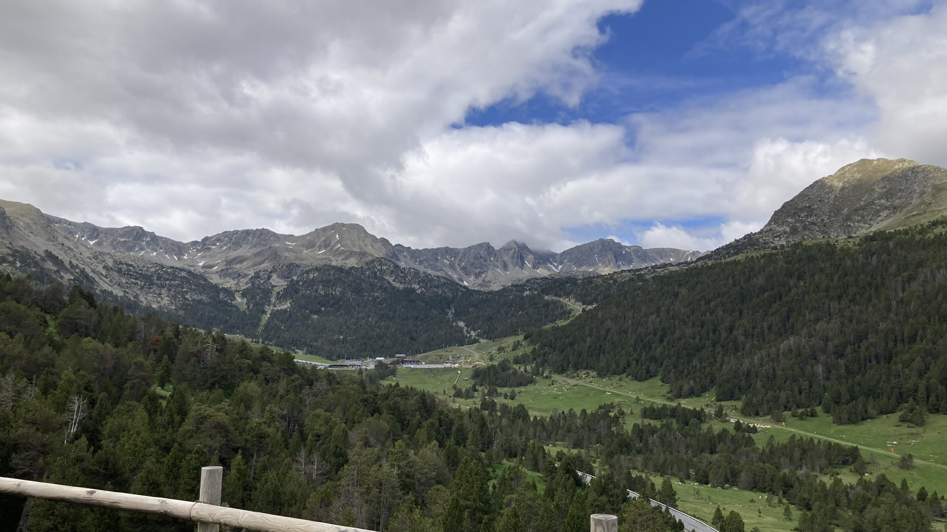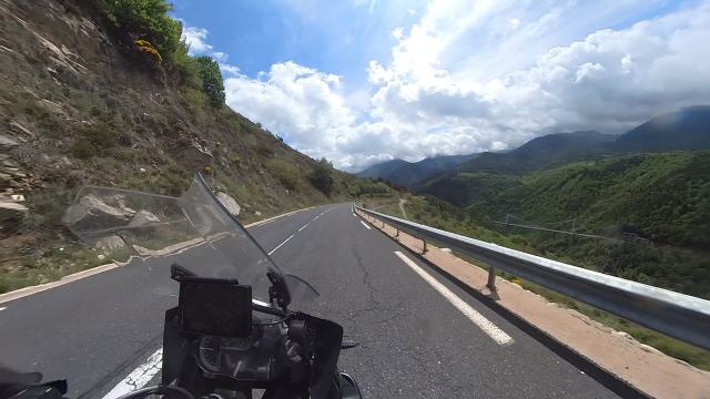 Die extrem gut ausgebaute Straße verführte ein wenig zum Fallenlassen des rechten Handgelenkes und Vergrößern der Schräglage. Das hat richtig Spaß gemacht. So erreichte ich die Passhöhe des „Port d’Envalira“ (2408m). Hier wechseln sich Tankstellen und Hotels ab. Auf der Westseite stoppte ich an dem Aussichtspunkt „Mirador Circ de Pessons“ und genoss die Aussicht und schoss ein paar Erinnerungsfotos. |
