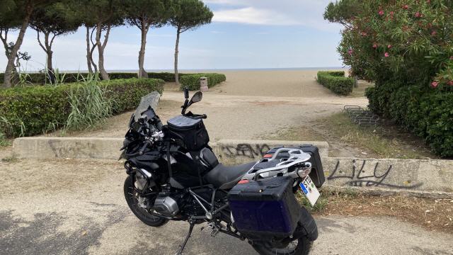 Das Wetter hatte sich deutlich verschlechtert, starker Regen und teilweise auch Wind begleitete mich auf meinem Weg. Ich erreichte das Mittelmeer in Argelès-sur-Mer und schoss am „Argelès Plage“ mein Erinnerungsfoto. Durch Baustellen und einem Gewirr von Einbahnstraßen fand ich dann noch den Yachthafen „Port d’Argelès“, warf einen Blick auf die Boote und das Meer und machte mich auf den Rückweg. |