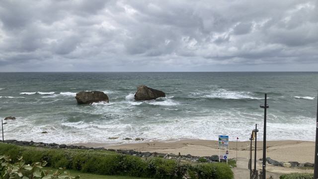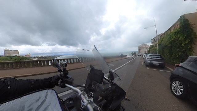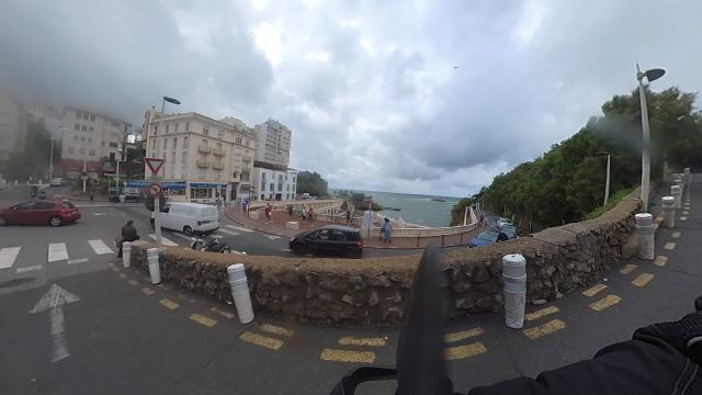 Hier erhaschte ich den ersten Blick auf den Atlantik, vorbei am „Hôtel du Palais Biarritz“. Es herrschte dichter Verkehr in den teilweise engen Gassen. |