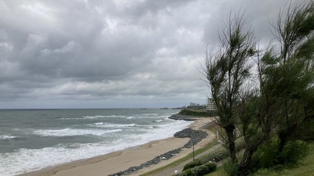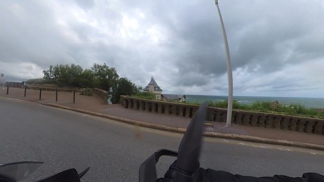 Im Süden des Ortes fand ich dann eine geeignete Stelle am „Plage d'Ilbarritz“. Es war windig und kühl, Badegäste konnte ich hier nicht entdecken. Bei gutem Wetter wird hier sicherlich der Bär steppen. So hatte ich das Glück mein Moped einfach mal am Rande eines Kreisels abstellen zu können, um ein Paar Fotos zu schießen. |