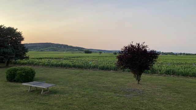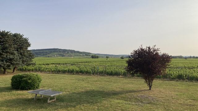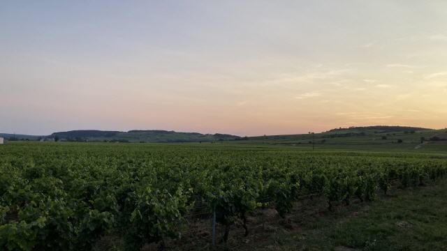 Als ich am Abend keine Lust mehr auf Fahren hatte, kehrte ich kurz vor dem Ort Beaune im „Hôtel Kyriad Prestige Beaune Le Panorama“ ein. Ich gönnte mir ein nettes Abendessen und legte danach mein müdes Haupt in einem gemütlichen Bett ab. Am Morgen strahlte mir die Sonne vom wolkenlosen Himmel entgegen, das Frühstück konnte ich auf der Terrasse zu mir nehmen, es war angenehm warm und ich genoss den Blick in die Weinberge, die sich in drei Himmelsrichtungen von dem Hotel erstreckten. |