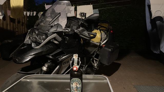 Nach der Dusche und dem Versorgen meiner Kameraakkus in den Ladegeräten traf ich mich mit den Schweizern zum Bier trinken und Abendessen. Seit 2003 fahre ich mit meinen Freunden auf Motorradtouren, seit 2014 auch länger als nur ein Wochenende, und ich dachte immer, es sei etwas Besonderes, wenn es so lange funktioniert. Als ich die Herren fragte, seit wann sie gemeinsam auf Tour gingen, hat mich die Antwort jedoch glatt umgehauen. Seit über 40 Jahren, seit der gemeinsamen Schulzeit noch mit Mopeds. Sie waren schon in den USA, am Nordkap und weiß der Kukuk wo noch. Es war ein sehr netter Abend mit gemeinsamen Abendessen und auch das Frühstück genossen wir zusammen. |