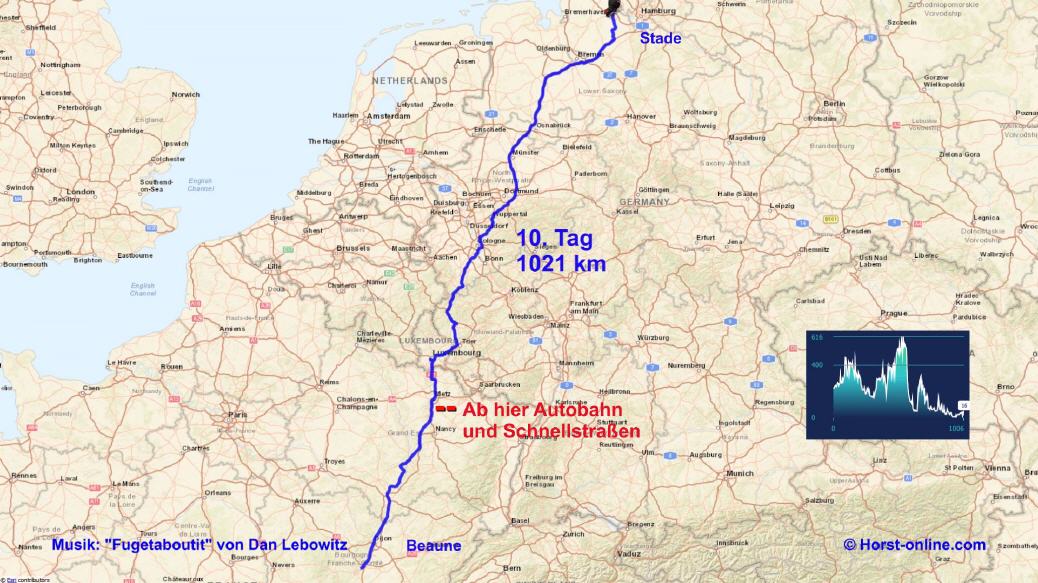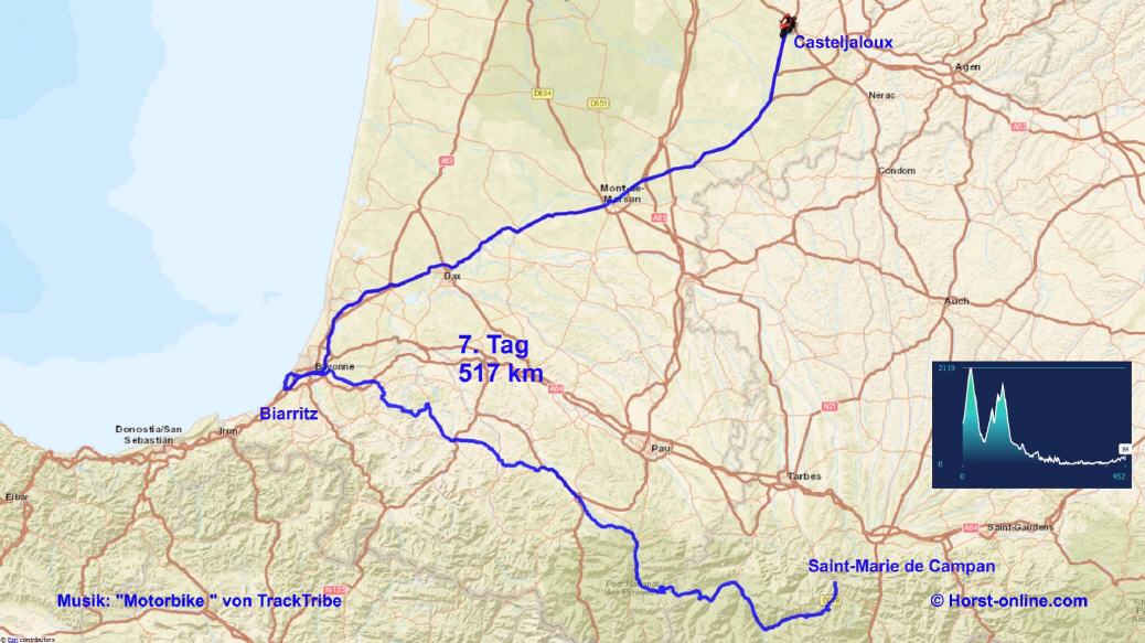 Doch dann kam alles anders. Als erster musste ich aussteigen, ich bin eine berufliche Verpflichtung eingegangen, die mich zwang in dem geplanten Zeitraum in Stade zu bleiben. Dann stellten sich bei Mitgliedern der Gruppe, oder im direkten familiären Umfeld, auch noch gesundheitliche Probleme ein, dadurch wurden die Gruppen nochmal wieder kleiner. Ich hatte für mich entschieden, allein auf Tour zu gehen. Ich hielt am Ziel Pyrenäen fest, aber verkürzte die Tour in der Planung. |