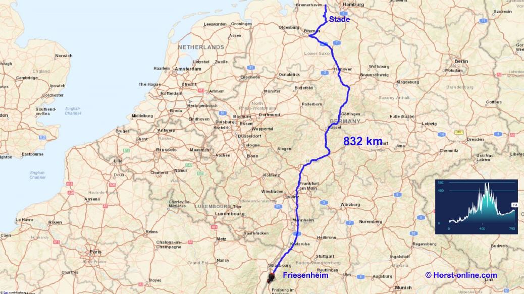 Für die erste Etappe wählte ich das vertraute Ziel „Landgasthof Ochsen“ in Friesenheim. Die Übernachtung im letzten Jahr hat mir dort sehr gut gefallen und von der Entfernung ist es ein guter Start für eine längere Tour. Normalerweise fährt Bernd voraus und hat die Route geplant. In diesem Jahr musste ich alles allein machen und in der Planung war eigentlich noch alles in Ordnung aber bei der Umsetzung habe ich dann ein bisschen versagt. Ich bin fast 100 Kilometer mehr gefahren als im Jahr davor, weil ich gleich am Anfang der Strecke mehrere Probleme hatte. Zuerst musste ich eine Umleitung fahren dabei kam mein Navi ein bisschen durcheinander. Ich habe dann ist die Route gestoppt und beim Neustart eine von Bernd geplante Route aus dem Vorjahr erwischt. Es hat etwas gedauert bis ich den Fehler erkannte und bin entgegen meiner Planung in die andere Richtung gefahren. |