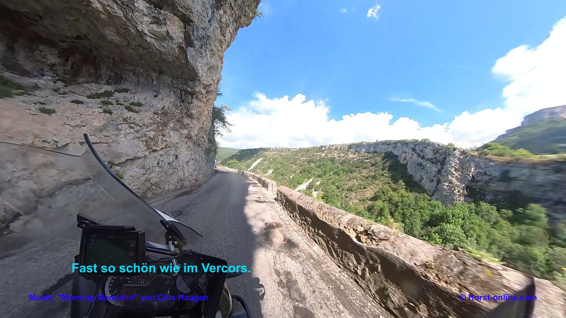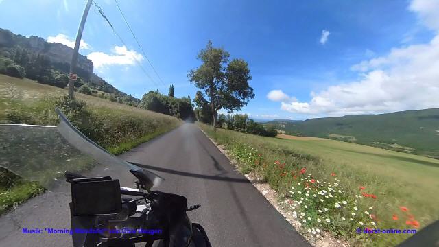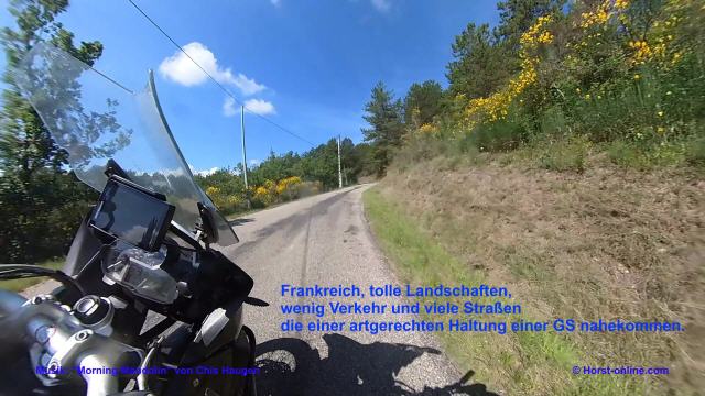 Als ich meine Augen aufschlug wurde ich von Sonnenschein überrascht. Es versprach also ein schöner Tag zu werden. Das reichhaltige Frühstück versüßte mir den Start in den zweiten Tag meiner „Solotour 2023“ zusätzlich. So gestärkt belud ich meine GS und brach in Richtung Süden auf. Mein nächstes Ziel war die Landschaft Vercors. Vor vielen Jahren sind meine Frau und ich, beide damals auf unseren Transalps, zufällig durch die Region gefahren. Ich fand die Straßenführung und die Landschaft dort so beeindruckend, ich wollte immer mal wieder dort hinfahren. Leider hatte ich keine Idee, wo wir seinerzeit waren. Es war deutlich in der Ära vor Handy, Navi und Internet. Im vergangenen Jahr entdeckte ich zufällig ein Foto von der „Combe Laval“ und konnte so die D76 in meine Routenplanung einbeziehen. Nun konnte ich ja, das Internet nutzen. |