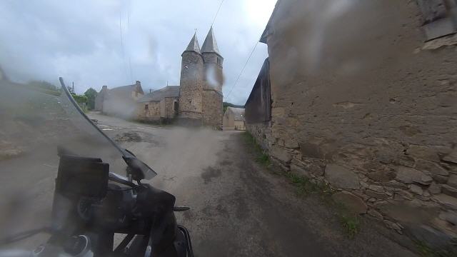 Hier nochmal ein schöner Ausblick bei Sonnenschein, je höher mich die Straße führte, desto dunkler wurde der Himmel. Die Temperaturen sanken wieder in Richtung einstelliger Bereich. | Im Regen habe ich dann nur noch diese alte Kirche abgelichtet, die Ortsdurchfahrt war zwar interessant, doch das Wetter lud nicht zu einem Stopp ein. |