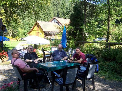 Nach einer halben Stunde sah ich mir die Gegend auf der Straßenkarte an und beschloss daraufhin eine kurze Tour zu machen. Weiträumig umkurvte ich den Rappbode-Stausee. Meine Tour war 40 km lang und brachte mich durch Elbingerode, Rothehütte, Tanne, Trautenstein und Hasselfelde zurück nach Rübeland. Das hat mir richtig Spaß gemacht. Ich konnte mein eigenes Tempo fahren und die Kurven genießen. Außerdem brauchte ich auf niemanden Rücksicht nehmen. Das war einfach klasse. Ich hatte meine Yamaha gerade auf dem Parkplatz wieder abgestellt, da erschienen meine Freunde aus dem Bergwerk. Nach einem kurzen Plausch fuhren wir nach Elbinerode, um dort Kaffee zu trinken. Von dort fuhr Bernd P. alleine nach Tanne zurück. Wir anderen nutzten die Zeit noch einmal zu einer Tour. Wir fuhren von Elbingerode über Rübeland, Wendefurth, Altenbrack, Treseburg, Thale, Friedrichsbrunn, Barenrode, Güntersberge, Stiege, Trautenstein, Beneckenstein, Sorge und Elend nach Tanne zurück. Auf dieser Tour kamen wir durchs Bodetal. Hier waren Fliegenfischer zu beobachten, wie sie ihrer Leidenschaft nach gingen. Sie standen mit ihren Wathosen im Fluss und ließen die Fliegen immer wieder auf das Wasser gleiten. Das sah schon klasse aus. Schließlich kamen wir wieder beim Hotel an, stellten die Mopeds ab und begaben uns zur Terrasse. Wie jedes Mal machten wir hier unsere Bierpause, bevor es unter die Dusche ging, um sich für den Abend durch zu stylen. Das Essen war lecker wie immer. Das Bier schmeckte auch. Nur das Wetter wurde etwas schlechter und es wurde etwas kühler. Doch es blieb trocken. Müde und glücklich ging ich bald ins Bett, denn am Sonntag wollte ich früh zurück fahren. Ich hatte meiner Fußballmannschaft versprochen zum Punktspiel wieder da zu sein. |