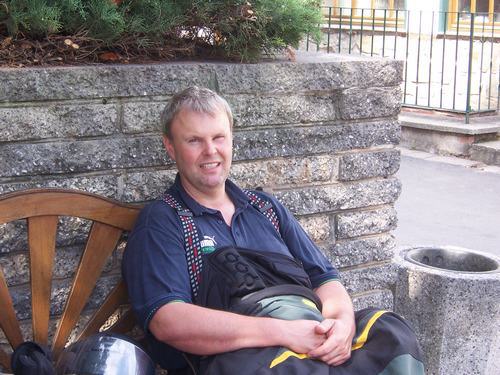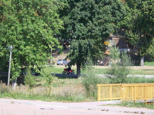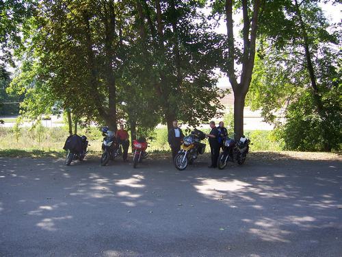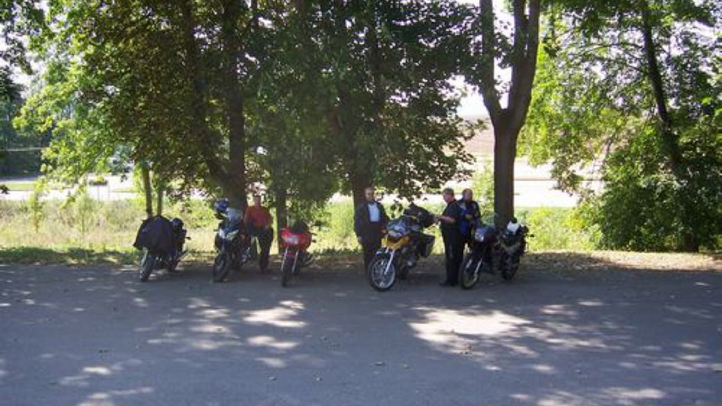 Wir fuhren weiter über den Staudamm und durch einen Tunnel und erreichten bald Rübeland. Hier wollten wir uns ein Schaubergwerk ansehen. Am Parkplatz suchten wir uns einen Stellplatz. Die Stellfläche war nicht sehr groß für Motorräder und noch dazu recht steil. Eine Motorradfahrerin hatte Probleme. Norbert fragte noch, ob sie Hilfe bräuchte, doch sie lehnte ab. Beim Wenden ihrer Maschine rutschte sie auf dem lockeren Untergrund weg und fiel mit ihrem Motorrad auf die Seite. Norbert und Bernd E. sprangen sofort zur Hilfe und hoben die Maschine auf. Es war nicht viel passiert, außer ein paar Kratzern. So konnte sie mit ihrem Kollegen bald die Fahrt fortsetzen, nachdem sie sich von dem Schreck erholt hatte. Ich hatte keine Lust zur Bergwerksbesichtigung und so blieb ich bei den Maschinen. Meine Freunde fuhren mit ein. |