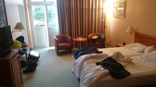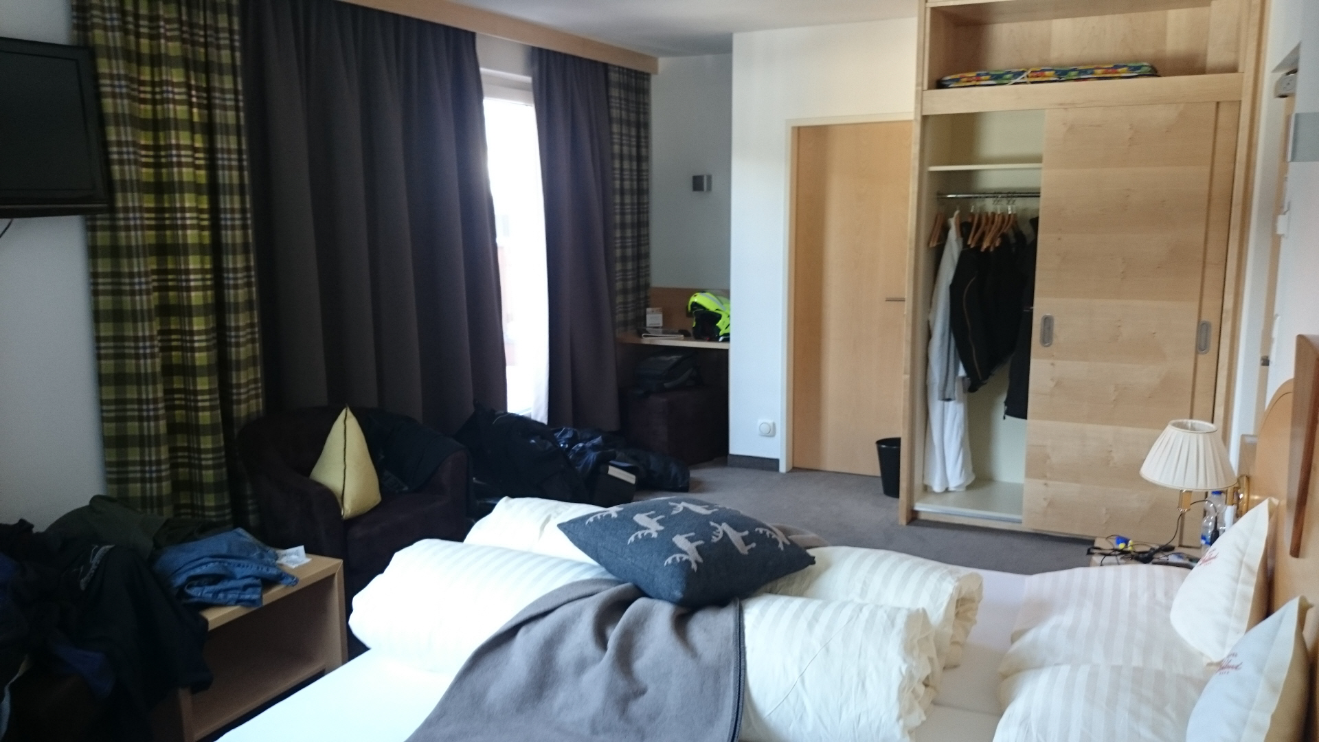 Nach dem Bezug unserer gemütlichen Zimmer suchten wir nach möglichen Unterbringungsorten für unsere nassen Klamotten bevor wir uns in das „Premium All Inclusive“-Angebot begaben. Das „Gemütlich“ in Bezug auf mein Zimmer ergab sich aus der heimeligen Erinnerung an meine Studentenbude. Mein Mitbewohner beschwerte sich nach drei Jahren, beim Auflösen der Wohngemeinschaft, über den Staub den ich in der ganzen Zeit auf meinem Regal gehortet hatte. Mama hat ja nicht mehr hingeguckt. Die Zwischenablage meines Nachttisches im Hotelzimmer erinnerte mich an meine Studentenzeit. Da war wohl ein blinder Fleck in der Optik des Personals. Ansonsten, Zimmer und das Bad waren sauber. |