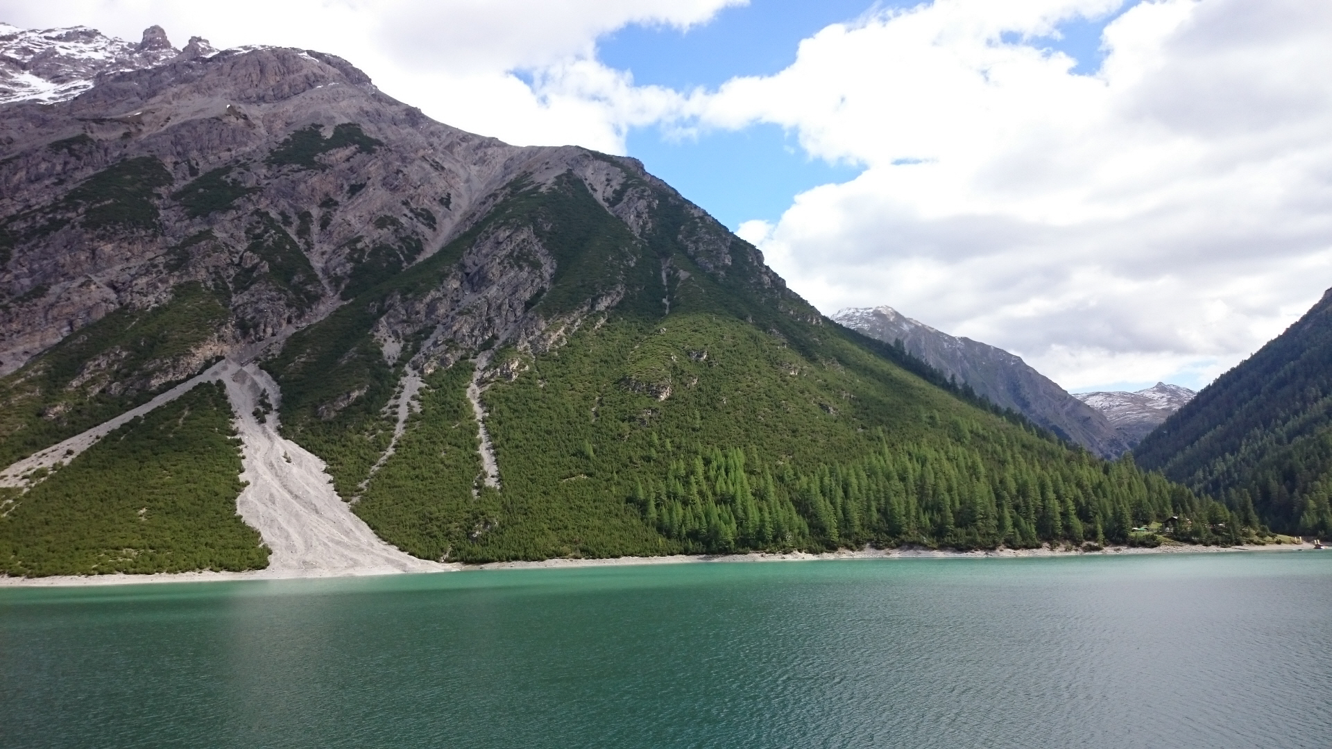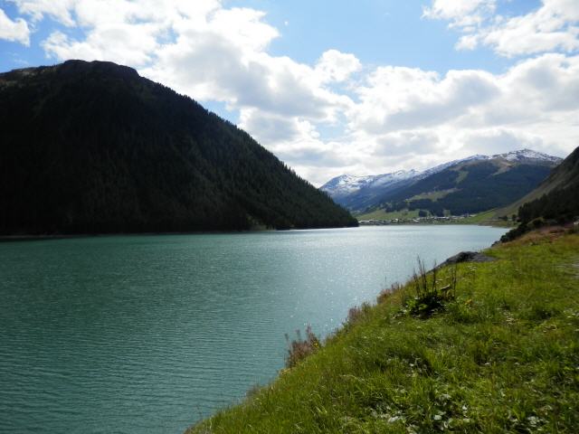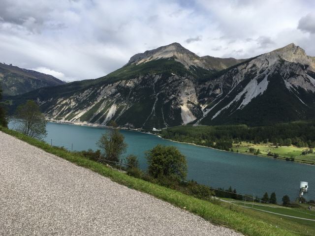 Weil die Sonne wieder rauskam und ich noch Bock auf Fahren hatte bin ich zum Reschensee gefahren. In Reschen bin ich nach rechts abgebogen und auf schmalen Straßen über Giern und Spinn hoch über dem Reschensee durch Wald und Wiesengebiete gefahren. Zwischendurch hatte ich herrliche Ausblicke auf den See tief unter mir. An der Südspitze des Sees bin ich auf die SS40 gen Norden gefahren. Immer wenn es eine Abzweigung nach Osten gab bin ich abgebogen und die Stichstraßen bis zum Ende hochgefahren. Ich landete dann entweder in einer Sackgasse oder auf einem Bauernhof und bin einigen nett grüßenden Menschen begegnet. |