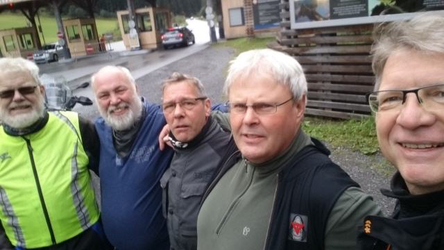 Schnell habe ich die 63 Kehren, so ist es jedenfalls in Beschreibungen des Passes zu lesen, genussvoll abgearbeitet als die Herausforderung „Parkplatzsuche“ auf dem Pass anstand. Während ich mich noch suchend orientierte sah ich meine Jungs, wie immer, in der Nähe einer Wurstbude. Noch rechtzeitig für ein Gruppenselfi vor der wunderschönen Bergkulisse. |