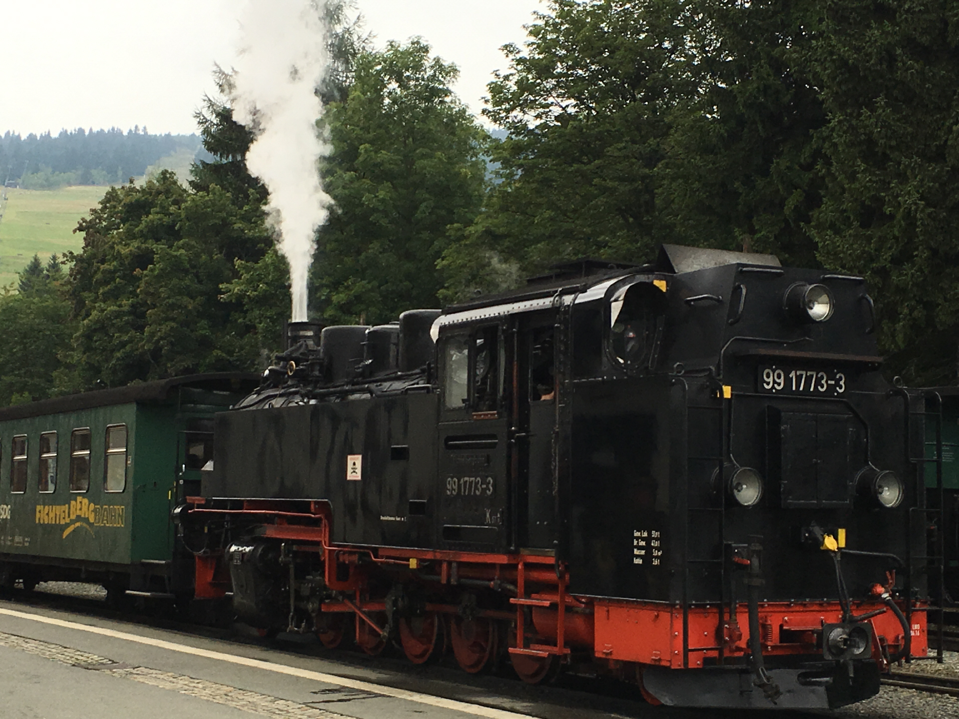 Wir überlegten ein lohnendes Ziel für das Wochenende, das auf der Route zum Ziel der Folgewoche lag, alle Jungs interessierte. Jürgen brachte das Erzgebirge ins Gespräch. Bernd E. war schon einmal dort und konnte sich das Ziel vorstellen. Kurz nach der Wende sind meine Frau und ich mit dem Motorrad nach Usedom gefahren. Die nächtlichen Prügeleien der Rechtsradikalen auf dem Campingplatz haben uns so angeätzt, dass wir, anders als geplant, abreisten und immer weiter nach Süden fuhren. Irgendwann stießen wir an die Elbe. Dieser folgten wir dann bis Bad Schandau. Von dort sind wir durch das Erzgebirge getourt. Ich erinnerte schöne, geschwungene Kurven auf gut ausgebauten Straßen, viele kleine Geschäfte mit Schnitzereien und viel toten Wald.