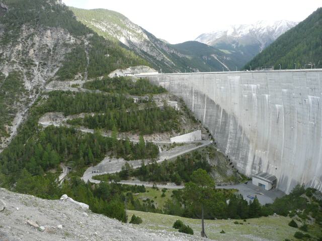 Nach einer gefühlten Ewigkeit sprang die Ampel endlich auf grün und wir durchfuhren den schier endlos scheinenden, schnurgeraden Tunnel um am Ende des Tunnels an die Mautstelle zu kommen und dort den Preis für diesen fragwürdigen Genuss zu erfahren. Für die 3,5 km und fünf Motorräder wurden 60,00 € aufgerufen. Kopfschütteln und umdrehen ist nicht vorgesehen. Machen wir das Beste draus. An der Staumauer haben wir ein Päuschen eingelegt und die Aussicht genossen. Auf der einen Seite ein Blick in die Tiefe auf Miniaturautos, in die andere Richtung der beeindruckende See. |