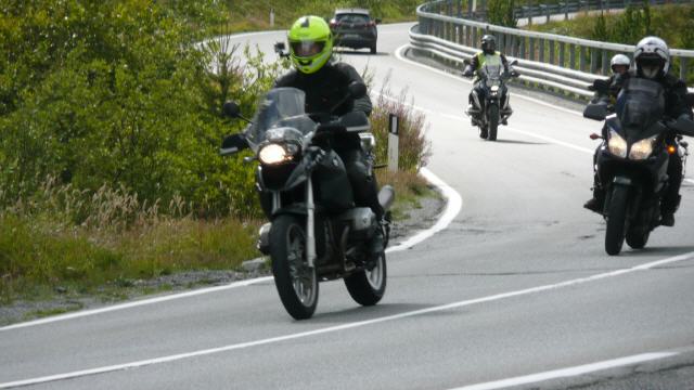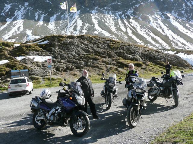 5. Tag Anreise nach Nauders Über Landstraßen, Schnellstraßen und Autobahnen fuhren wir durch Tschechien in Richtung Südwesten. Obwohl ich schon mehrere hunderttausend km mit dem Motorrad auf den Straßen Europas unterwegs war, waren das meine ersten in Tschechien. Ich weiß nicht was ich erwartet habe, doch die vielen Menschen in den Dörfern auf dem Weg zur Kirche und die riesigen Industriebetriebe wie z.B. Playmobil haben mich dann schon überrascht. Beim Start am frühen Morgen empfing uns kaltes aber trockenes Wetter. Im Laufe der Tour bahnte sich die Sonne einen Weg durch die immer höher steigenden Wolken. Es wurde richtig angenehm. Volker hat sich bei einer kurzen Rast in die Sonne gesetzt, sein Gesicht gen Licht ausgerichtet und sich Minutenlang nicht bewegt. Ein weiser Mensch, ahnte er was noch auf uns wartete? Die ersten Autobahnetappen legten wir zügig bei Sonnenschein zurück. Doch je näher wir an München rückten desto dunkler wurde der Himmel und voller wurde die Bahn. Als der Regen dann in Sturzbächen auf uns herniederprasselte begann auch der nicht enden wollende Stop-and-go- Verkehr. Ehrlich, ich kann die Strecke die wir gefahren sind nicht mehr rekonstruieren. Ich bin einfach hinter Bernd E. hergefahren und war froh als wir am Abend in Nauders im Hotel Hochland ankamen. |