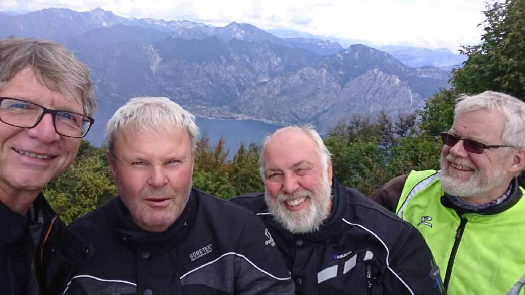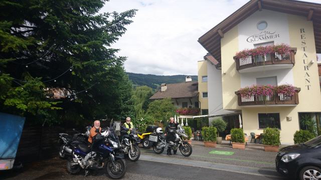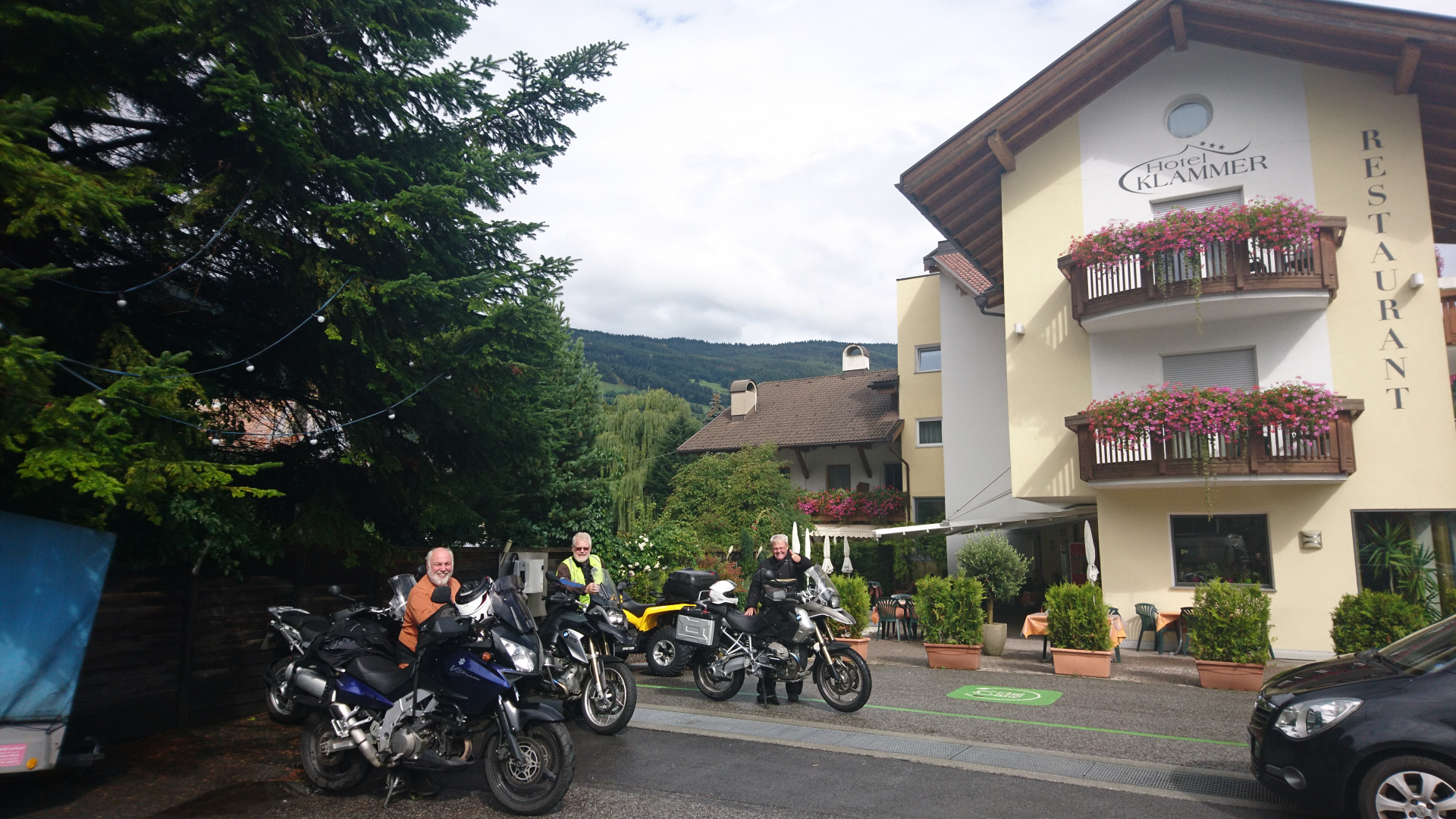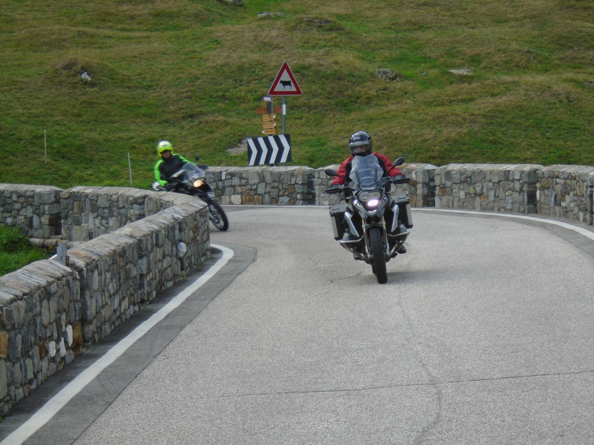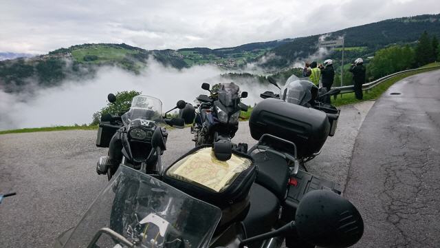 5. Tag Von Sterzing nach SanZeno di Montagna (Gardasee). Bernd hat es wieder Mal geschafft, eine tolle Route auszuarbeiten. Die Highlights der Strecke: Jaufenpass, Mendelpass und meine Lieblingsstrecke von Trento nach Cimone. Wir starteten bei leichtem Regen und hatten auf dem Jaufenpass nur eine sehr eingeschränkte Sicht. Es war neblig und die Straße nass. Wir konnten nicht nachvollziehen wie sich bei diesem Wetter eine große Gruppe Rennradfahrer auf den Weg von Sölden nach Sterzing machen können. Ok, an jeder Ecke stand schon Mal ein Krankenwagen und, momentan noch, ungestresste Polizisten. |