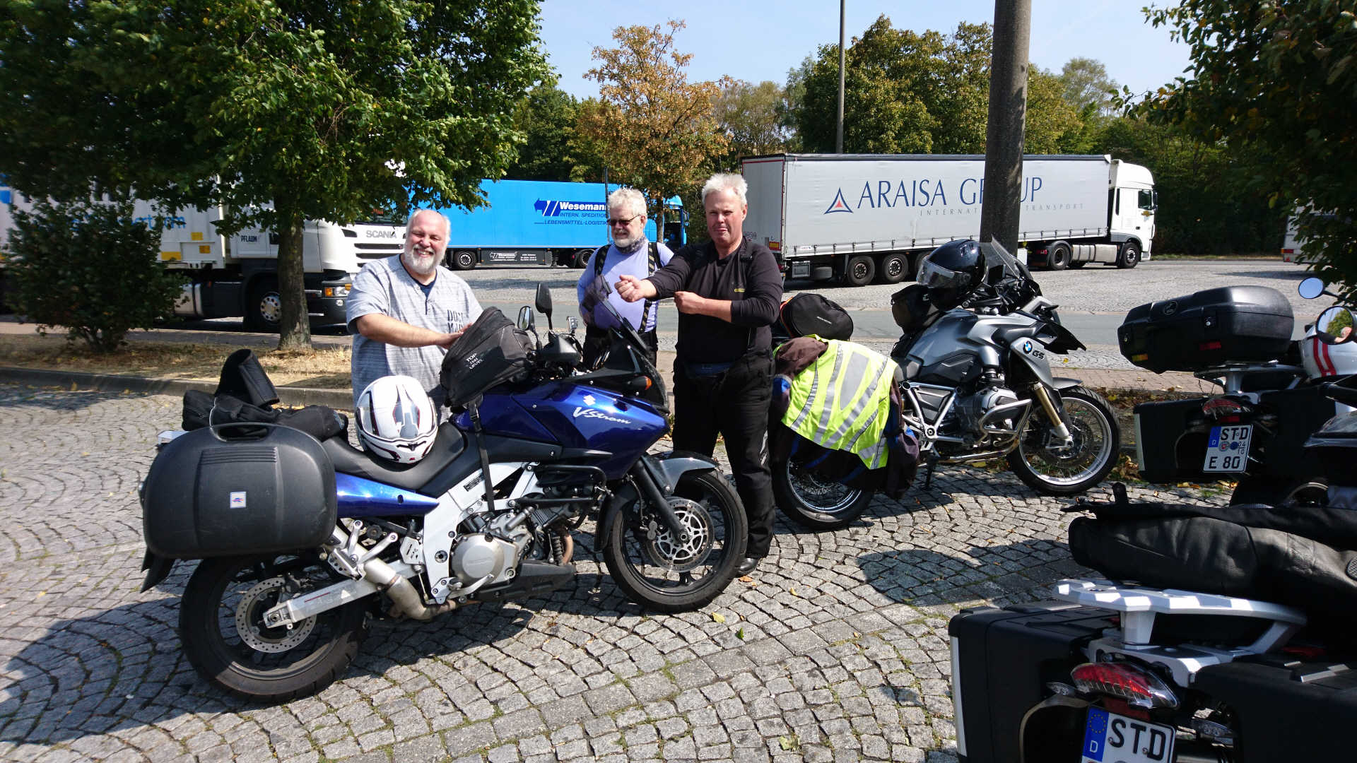 Wir baten den Schaffner uns morgens zu wecken um rechtzeitig in HH in den Motorradklamotten bereit zu sein. Das geschah jedoch nicht. Der Zug hatte 2,5 Stunden Verspätung. Der Kaffee war eine Zumutung und das Gebäck war absolut identisch mit dem Teil, das Bernd P. vom Café in den Wald geworfen hatte.