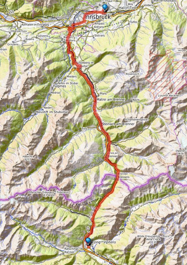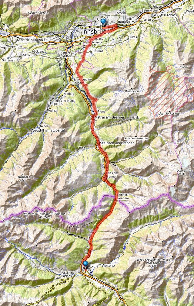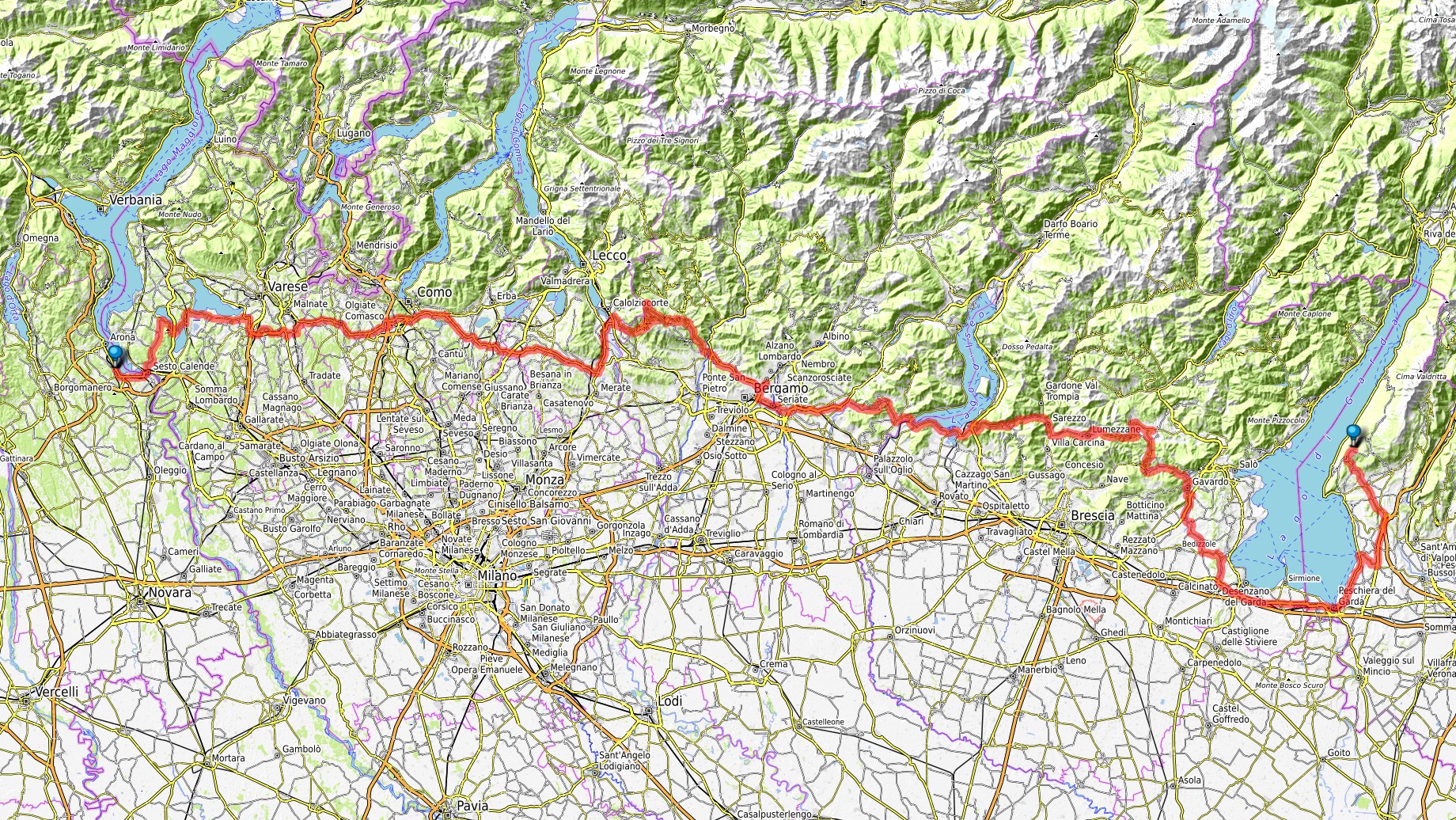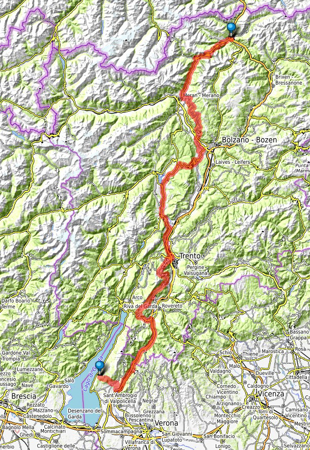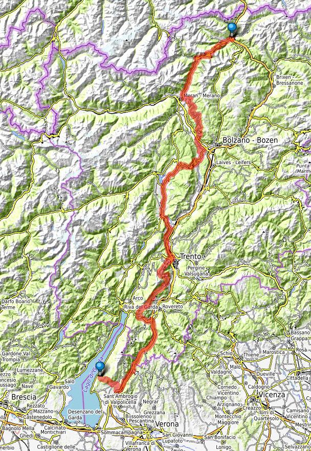 Die Stationen: Sterzing (bei Bozen), SanZeno di Montagna (Gardasee) und Dormelletto (Lago Maggiore).