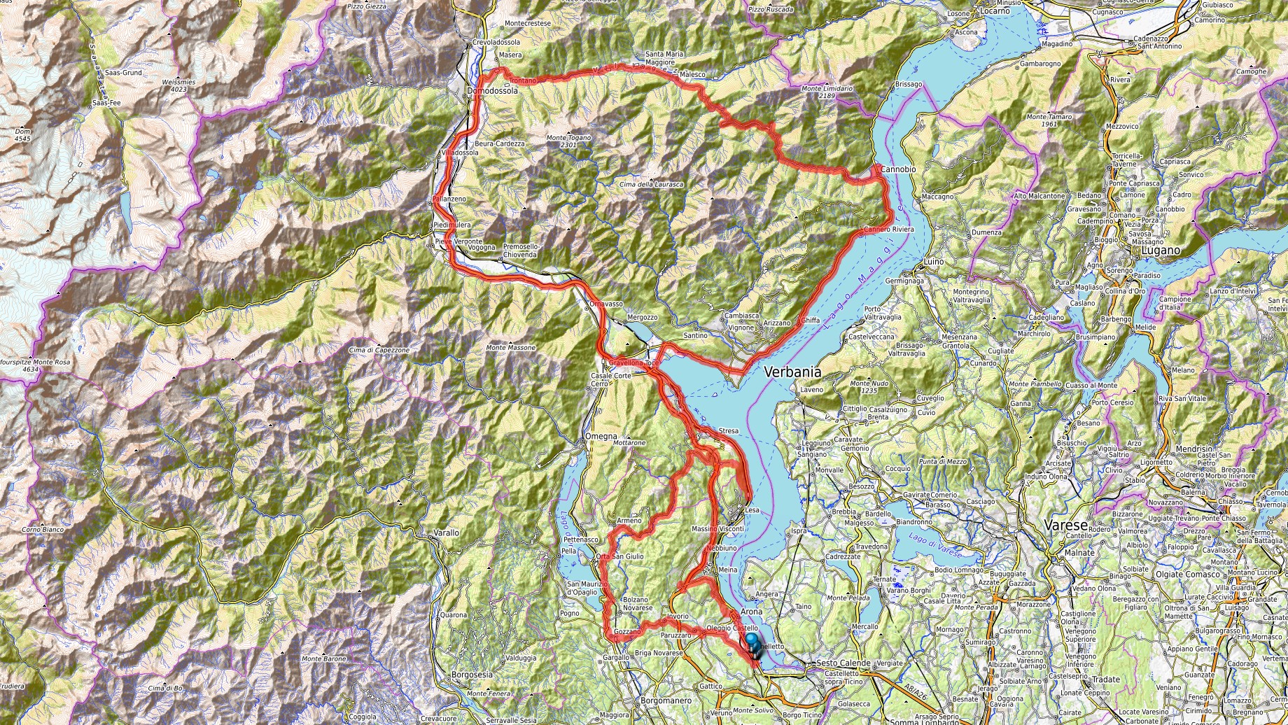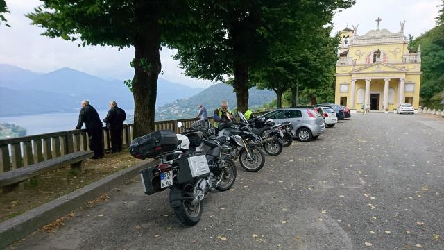 Wir sind dann eine Weile auf der SP33 am Ufer des Lago Maggiore in Richtung Süden gefahren. Es war dort viel Verkehr aber es ergaben sich immer wieder schöne Ausblicke auf den See und beeindruckend schöne Villen. In Carcioni haben wir dann die Hauptstraße verlassen und sind durch die Berge nach Vacciaghetto gefahren. Dort haben wir an der „Santuario Madonna della Bocciola“ den Anker geworfen und diese heilige Stätte besucht. Von dort oben hat man einen herrlichen Blick auf den Lago d’Orta und den Ort Orta Sab Giulio. Wir haben zwar nicht so viele km gemacht, doch diese haben sich, auch wenn es zwischenzeitlich geregnet hat, gelohnt. Wir waren natürlich wieder in der Pizzeria:-) |
