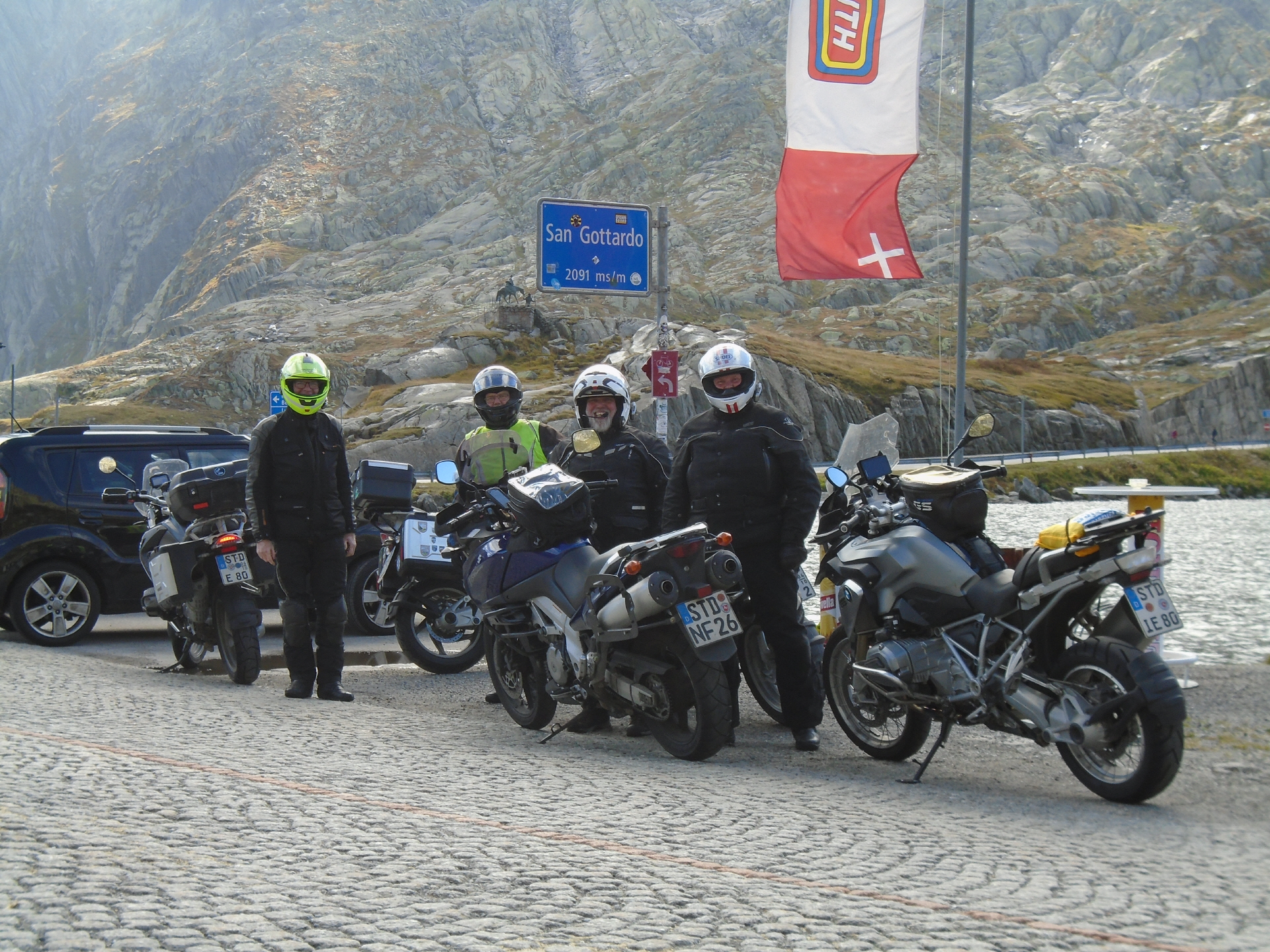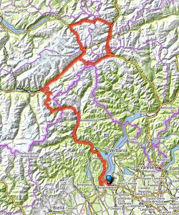 10. Tag Das Highlight der Männertour 2018. Ab in die Schweizer Alpen, 522 km Fahrspaß. Die Route: Auf Autobahn und Schnellstraße Richtung Schweizer Grenze bei Paglino. Über den Simplon nach Brig. An der Rotten entlang über den Grimselpass nach Innertkirchen. Nach einer Stärkung weiter über den Sustenpass. Die alte Gotthardstraße über den Gotthardpass und über die Tremola herunter. Von Airolo nach Ulrichen über den Nufenenpass und wieder zurück über den Simplon |