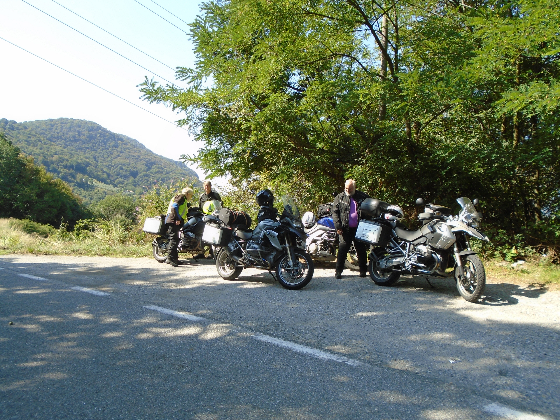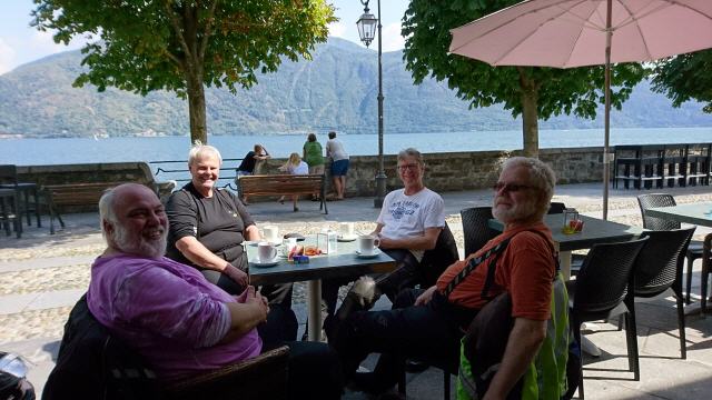 9. Tag Geplant war eine Tour in die Schweizer Alpen. Die Wetteraussichten für die Ziele in der Schweiz waren nicht sehr positiv und es kam alles ganz anders. Wir starteten Richtung Norden und machten auf der Autobahn richtig Strecke. Doch dann fiel Bernd E. auf, dass er und Volker ihre Pässe nach dem Check-in noch nicht von der Rezeption abgeholt haben. Bernd E. wollte ohne Pass nicht in die Schweiz einreisen. Also Planänderung. Zurück Richtung Süden und wie es so Bernds Talent ist über sehr interessante Strecken nach Cannobio, direkt an den Lago Maggiore. |