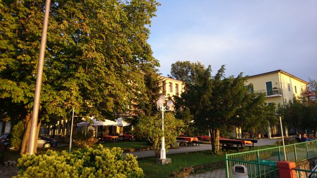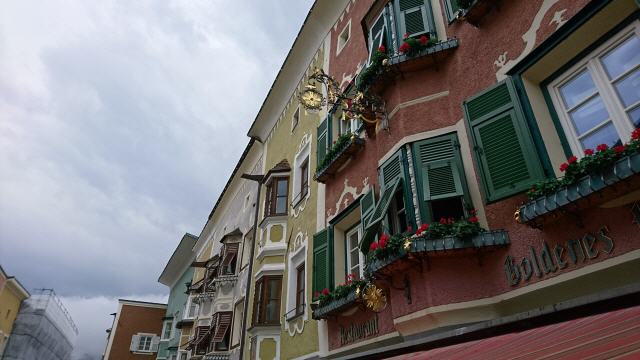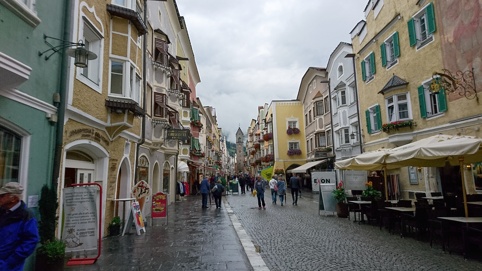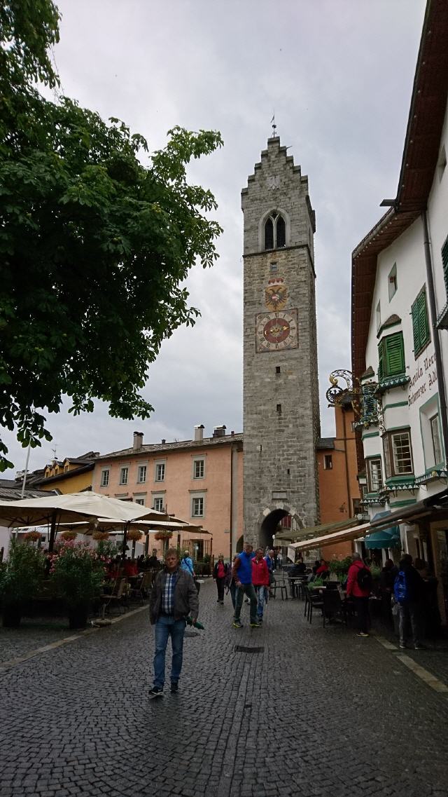 Rechts das Hotel "Park Hotel Jolanda". Das Zimmer war deutlich größer als in Sterzing. Das Frühstück beschreibe ich hier als gehoben italienisch. Gehoben, weil anders als sonst häufig in Italien, die Brötchen sich nicht schon auf dem Weg zum Tisch in Paniermehl gewandelt haben. Das geschah dann erst im Mund. :-) Der Kaffee, frisch aus dem Vollautomaten hatte einen Geschmack der durchaus eine zweite Tasse zuließ. Das Angebot auf dem Buffet war akzeptabel, verdient hier aber kein besonders Lob. Die Motivation aus dem Bett zu steigen ergab sich eher aus dem, sich permanent positiv veränderndem Wetter. Herrlich, wenn die Sonne morgens ins Bett scheint und die Schuhe auf der Fensterbank schon richtig trocknet. |