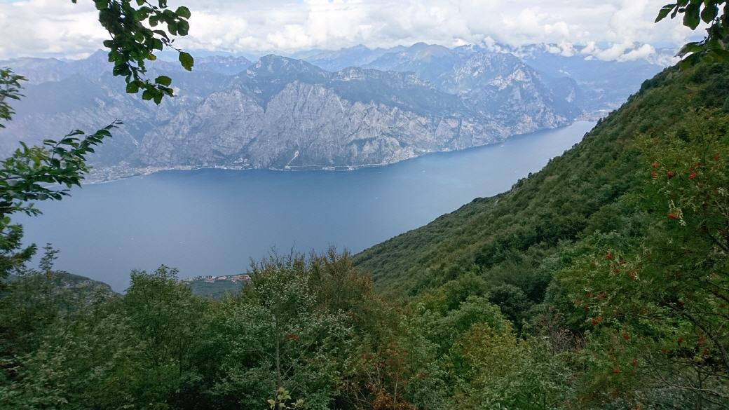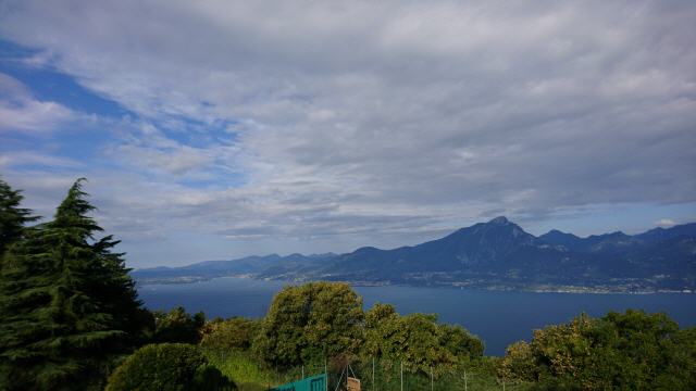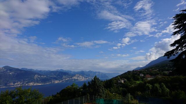 Die Aussicht vom Parkplatz des Hotels in Richtung Gardasee. Zu jeder Tageszeit und jedem Licht, ein Gedicht. Schattige Sitzplätze im Garten und kurze Wege zu den Versorgungsstationen versüßten uns die Abende nach dem Abendessen. Das Dinner bestand aus drei Gängen die sich jeder über eine Wunschliste zusammenkreuzen konnte. Also war jeder seines Glückes Schmied. Verwählt hat sich niemand von uns. Die Wahl traf jeweils, in etwa, die Erwartungen. |