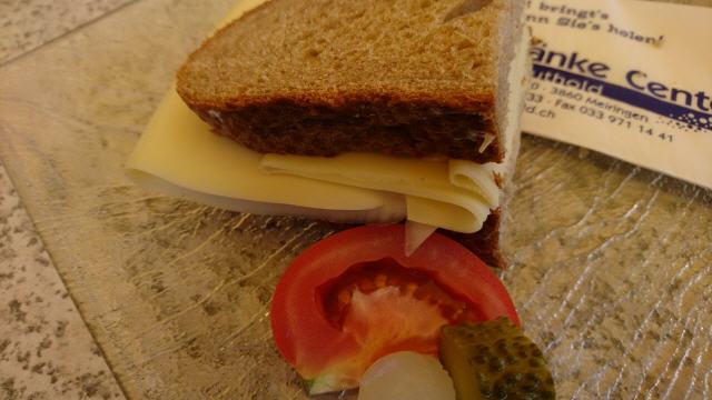 Nach neun Tagen das erste richtige Brot, wie haben wir das genossen. Die Pause im Hotel Hof in Innertkirch hat sich richtig gelohnt. |