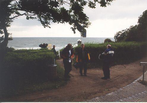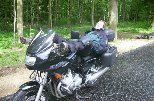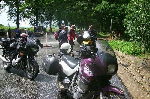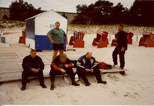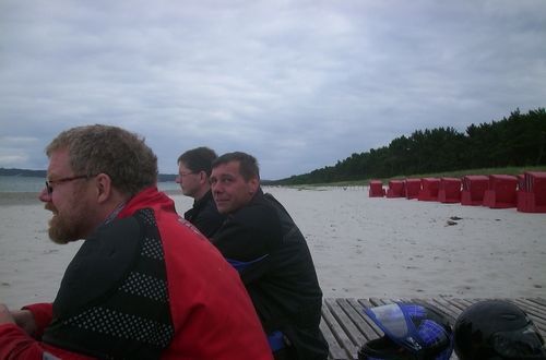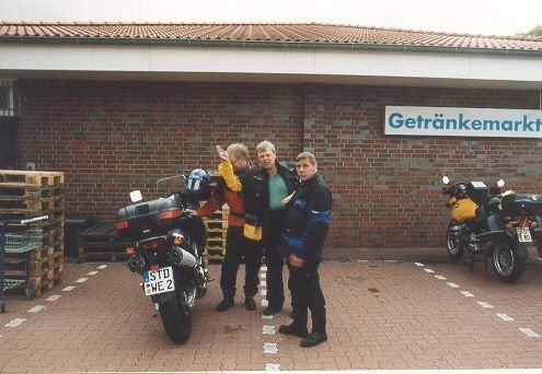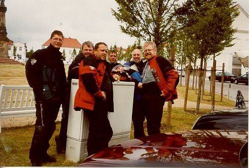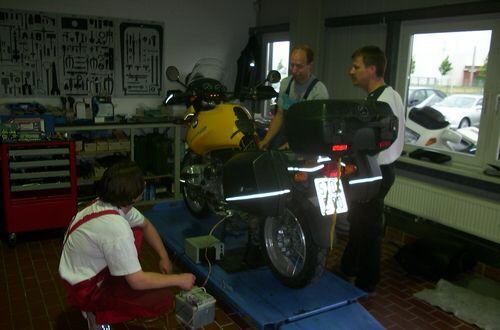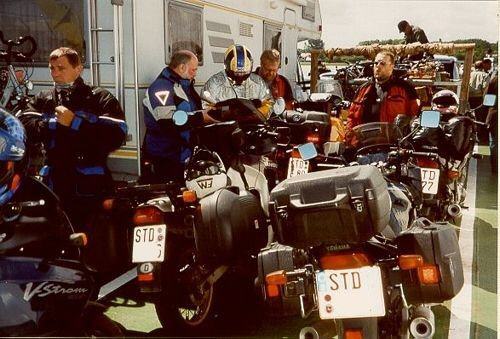 Auf den Streckenkarten fand sich eine Werkstatt in Bad Doberan. Bernd E. lieh sich die Diverson von Volker und fuhr dorthin. Nach kurzer Zeit kam er wieder. Er hatte ein paar Tricks erfahren und die wurden ausprobiert. Leider waren sie nicht von Erfolg gekrönt, und so mussten wir eine Werkstatt anrufen. Die BMW wurde auf einen Trailer verladen und zur Reparatur gebracht. |