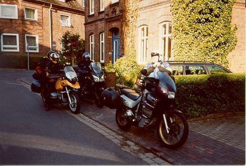 Durch Wiesen, Felder und Wälder ging es weiter über Trent, Kluis, Gingst, Dreschvitz nach Samtens Richtung B96. In Samtens bogen wir auf die B96 und fuhren zum Rügendamm. Über den Rügendamm verließen wir Rügen und fuhren nach Bad Sülze, um dort auf die BAB 20 zu fahren. Auf der Autobahn bekamen die Maschinen erst mal die "Sporen", denn es sollte schnell nach Hause gehen. Die Fahrt verlief ohne Probleme bis kurz vor Schönberg. Dann meldete sich aber Norberts Motorrad, es hatte Durst. Mit seinen 50 PS und der höheren Geschwindigkeit war der Tank fast leer und die nächste Tankstelle war unsere. Es wurde kurz aufgetankt und die Reise Richtung Heimat konnte fortgesetzt werden. Es ging wieder über Ratzeburg, Mölln zurück. In Ratzeburg legten wir noch eine Mittagspause in der "Kleinen Kneipe" ein. Hier gab es nur eine kleine Auswahl, z.B. Sauerfleisch mit Bratkartoffeln oder Frikadellen mit Brot usw. Das Essen war lecker und die Apfelsaftschorlen gut gekühlt. Nach diesem Zwischenstopp sollte uns der Weg weiter nach Lüneburg und dann nach Maschen führen. Auf dieser Strecke herrschte aber viel Verkehr, und so machten wir uns über die Viermarschlande Richtung nach hause. Ab Maschen fuhren wir auf die BAB 1 Richtung Bremen bis Rade. Von der Autobahn runter und auf der B 3 über Elsdorf, Buxtehude zu uns nach Horneburg, wo die Sachen von Bernd P. auf Norberts Transalp umgeladen wurden. Die anderen mussten ihre Fahrt noch nach Stade fortsetzen. Hier endete die Wochenendtour auch glücklich für meine Freunde. Fazit: Die Reise hat viel Spaß gemacht. Das Wochenende war für die Sehenswürdigkeiten auf Rügen zu kurz, so dass wir eine zweite Fahrt dorthin planen. Fortsetzung folgt hoffentlich im nächsten Jahr. P.S. Danksagung an: - meine Frau Edith, die mir bei der Rechtschreibung und den Formulierungen geholfen hat. - meine Freunde, die mit Bildern und ihrem Wissen beim Skript geholfen haben. Autor: Jürgen Augustin |