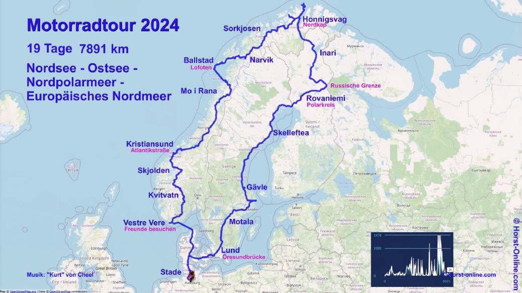 Es wird scheinbar von Jahr zu Jahr schwerer, eine gemeinsame Tour zu planen. Den einen hindern eigene körperliche Probleme oder Einschränkungen, die sich aus besonderen Umständen von nahestehenden Personen ergeben, zum Verzicht. Die Mischung aus noch arbeitenden und schon berenteten Gruppenmitgliedern und Abweichungen der „Bucket Lists“ und der persönlich geschätzten Restzeit zur Verwirklichung spielen eine immer größer werdende Rolle, die den Rahmen der gemeinsamen Möglichkeiten stecken. Wir sind mittlerweile alle im „knackigen Alter“: es knackt bei fast jeder Bewegung in irgendeinem Gelenk. Bernd P. hat Fakten geschaffen. Er wollte, genau wie ich, unbedingt zum Nordkap. Er hat schon sehr frühzeitig eine Gruppenreise gebucht. Sicherlich hat der Wunsch seiner Partnerin nach mehr Sicherheit auf einer so langen Tour eine wichtige Rolle gespielt. Ich habe nach seiner Verkündung trocken geschluckt. Die Hoffnung auf eine gemeinsame Tour hatte ich bis dahin noch nicht ganz aufgegeben. Bernd hatte es schon richtig eingeschätzt, eine Tour in einer Gruppe von über 40 Leuten, auch wenn das Fahren in „Kleingruppen“ von 9 Teilnehmern geschieht, kommt für mich nicht in Frage. Die anderen noch aktiv motorradfahrenden Gruppenmitglieder wollten nicht auf diese Tour. Wenn ich für mich noch etwas Gutes bewirken wollte, blieb nur ein Treffen mit Bernd P. am Nordkap. Da eine solche Gruppe einem festen Zeitplan folgt, war schon klar, an welchem Tag das Treffen stattfinden musste. Ursprünglich hatte ich die Tour im Uhrzeigersinn geplant, doch Willis Geburtstag wollte ich nicht verpassen. Zwischen der Feier und dem Treffen am Nordkap war die Zeitspanne zu kurz für meine Pläne. Ich drehte die Tour einfach um. Eine Motorradtour zum Nordkap stand schon so lange ich mit dem Motorrad reise ganz oben auf meiner Wunschliste. Bisher fehlte mir sowohl die Zeit als auch das nötige Kleingeld. Vor ein paar Jahren begann meine Frau mir zu meinen Geburtstagen und zu Weihnachten etwas für eine solche Tour zu schenken. Bücher von Leuten die von der Tour berichteten, einen warmen Schlafsack, eine sehr warme Weste, Kalender und irgendwann die klare Ansage: „Ich schenke Dir die Tour“: Übersetzt in der Sprache unserer Ehe ist das die Freigabe der Mittel von unserem Konto für dieses Projekt. |