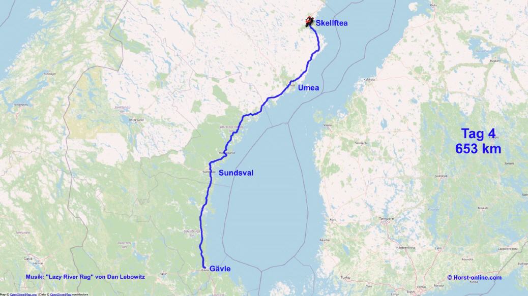 Aus meinen Erfahrungen des Vortages hatte ich gelernt. Nach wieder mehr als 650 km und dann auch noch im Regen, wollte ich die nächste Nacht in einem anständigen Hotel verbringen. Meine Wahl fiel auf das „Scandic Skellefteå“. Als ich das Hotel erreichte, war ich nass bis auf die Knochen. Meine Frage nach einem Trockenraum wurde mit einem „Sorry“ beantwortet. Das Zimmer war sauber, nicht sonderlich groß für so viel nasse Motorradkleidung, doch, wie sich herausstellte, groß genug. um die Sachen bis zum nächsten Tag zu trocknen. Das Restaurant war wieder einmal geschlossen, doch es gab eine Bistrokarte. Ich wählte eine Pizza. Die Preise erleichterten mir die Auswahl erheblich. Die Pizza war eine Mischung aus Flammkuchen (Stärke) und Knäckebrot (Feuchtigkeitsgehalt) und leider nicht ganz fertig aufgewärmt. Ich reklamierte mit den Worten: „Sorry, ist not really hot“, das Exemplar wurde noch einmal nachbehandelt und zum Trost mit mehr Mettwurst belegt. Am Nebentisch verrieten mir die Blicke, dass sie bedauert haben, meinem Beispiel nicht gefolgt zu sein. Was das Abendessen vermissen ließ, wurde vom Frühstück mehr als kompensiert. Eine sehr große Auswahl ließ nach meiner Einschätzung keine Wünsche offen, der große Raum war sehr ruhig und gepflegt. Rühriges Personal wieselte fleißig, aber unaufdringlich, durch die Tischreihen. Das hat mir sehr gut gefallen. |