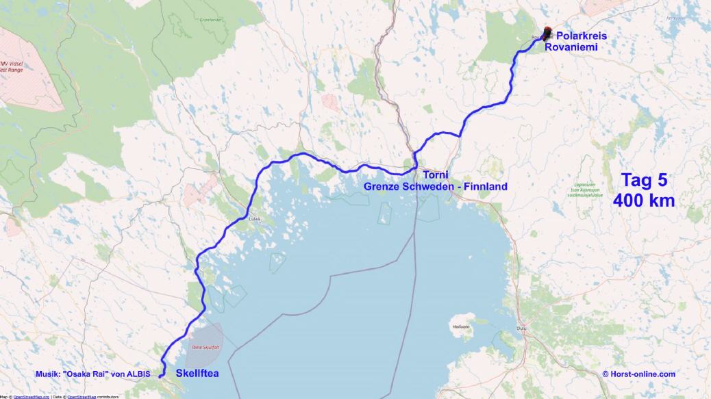 Gut gelaunt durch das tolle Frühstück und das Vorfinden der getrockneten Motorradklamotten stürzte ich mich wieder in den Regen auf die Hauptstraße in Richtung Norden. In Finnland sollte das Wetter ja besser werden und die Grenze sollte ich im Laufe des Tages erreichen. Mein Ziel für heute war der Polarkreis. Mit Lockerungsübungen und ein wenig Musik fuhr ich mit eingeschaltetem Tempomaten einfach weiter. |