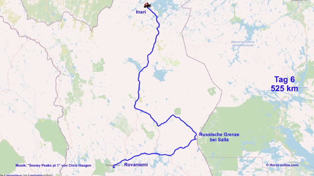 Die Speisekarte bot Verlockendes und der Weg zu einer alternativen Nahrungsquelle schien nun schon viel zu weit. Wir speisten zusammen, genossen den Abend und führten nette Gespräche. Am nächsten Morgen waren wir zum Frühstück verabredet. Ich hatte aber vorher noch einen anderen Plan. Ich legte auf dem Weg zum Frühstücksbuffet einen Zwischenstopp an der Rezeption ein und verlängerte meinen Aufenthalt um eine Nacht. Ich hatte in dem Bett so gut geschlafen, wie seit meiner Abreise nicht mehr, durch die Regentortour durch Schweden hatte ich einen Tag aufgeholt, also noch Zeit, bevor ich Bernd treffen sollte, und der Inari-See war ein Ziel auf meiner „Bucket List“. |