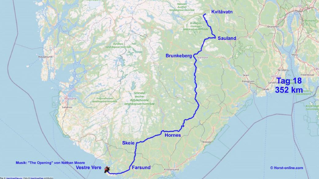 Das Begleitfahrzeug ist schon da, nun aber flott in die Klamotten und schon geht es los. Wir fuhren noch einige Kilometer zusammen, bis sie dann nach Osten in Richtung Oslo abbogen und ich mich nach Südwesten orientierte. |